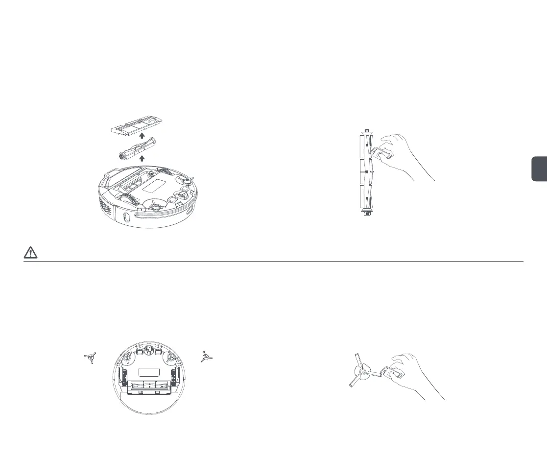Use el cepillo de limpieza para coger y cortar los cabellos y fibras enredados en el cepillo lateral. Se