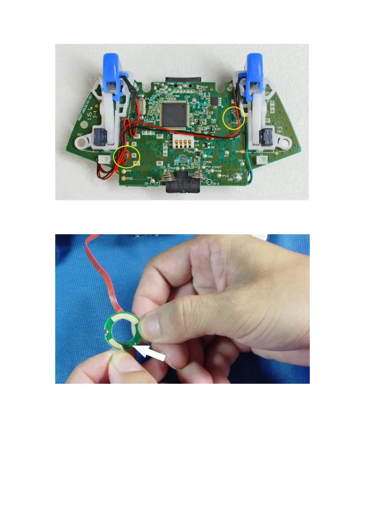 A-5Stick the 2 round PCB to the arrow indicated area and solder up the 4 points (red