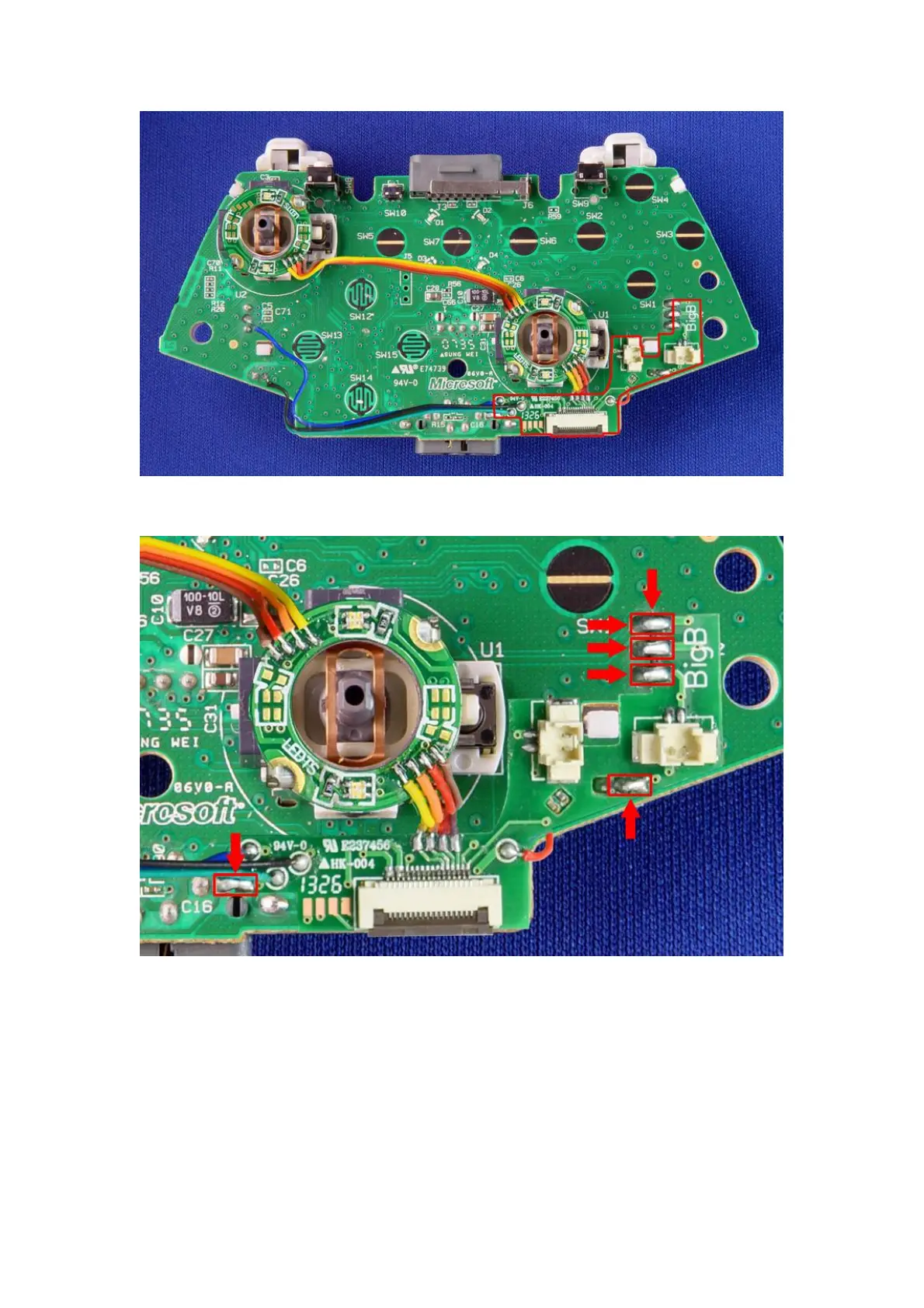 As shown in the pictures (A, B, C, D), solder the providing wires to its correct place.