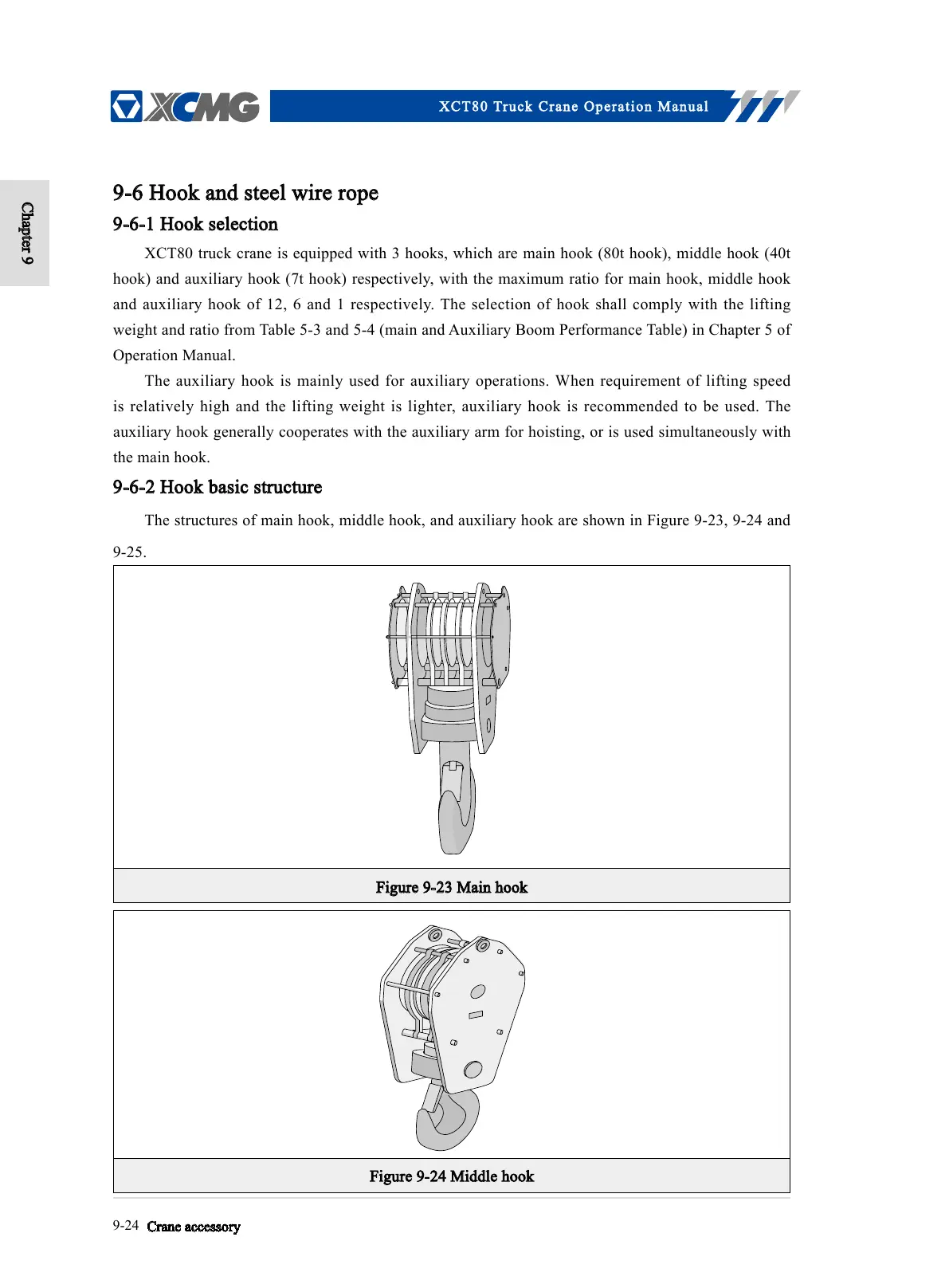 The structures of main hook, middle hook, and auxiliary hook are shown in Figure 9-23, 9-24 and