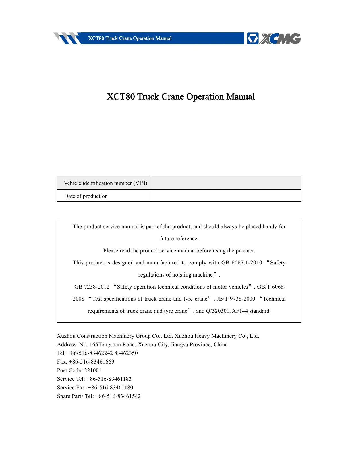 XCT80 Truck Crane Operation Manual