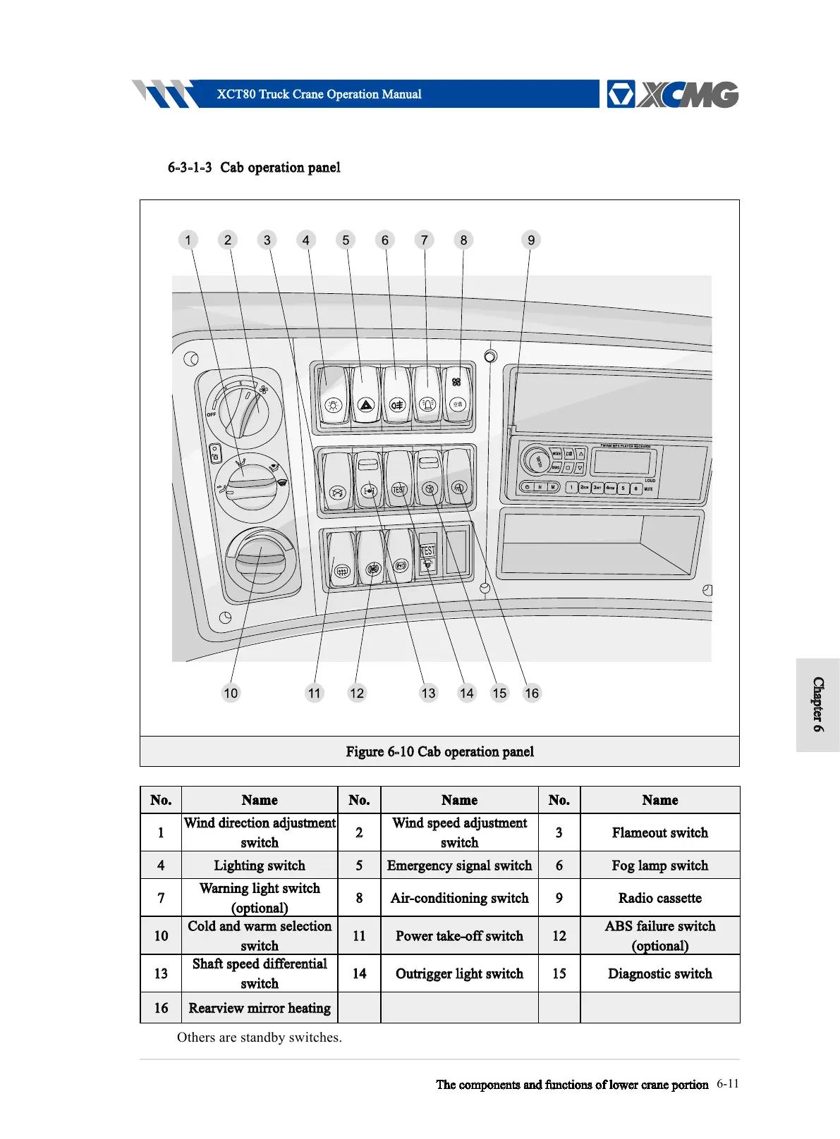 Figure 6-10 Cab operation panel