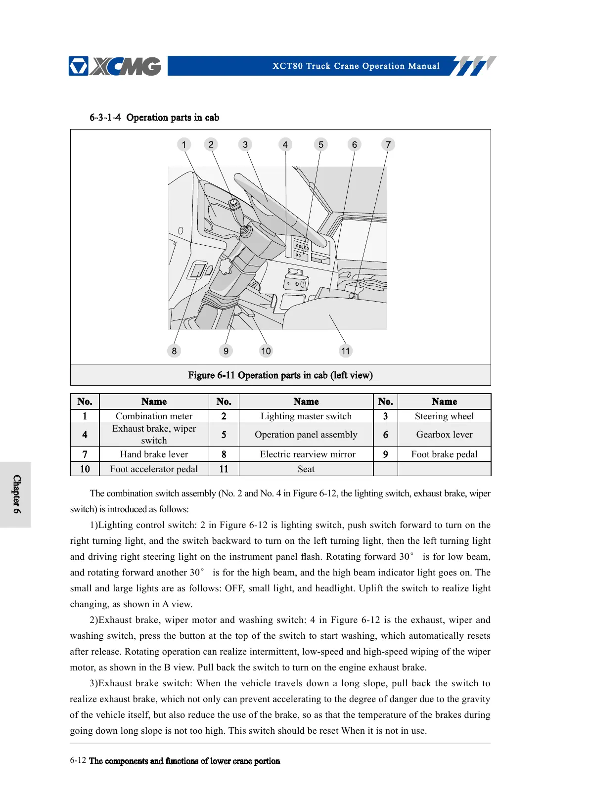 1)Lighting control switch: 2 in Figure 6-12 is lighting switch, push switch forward to turn on the