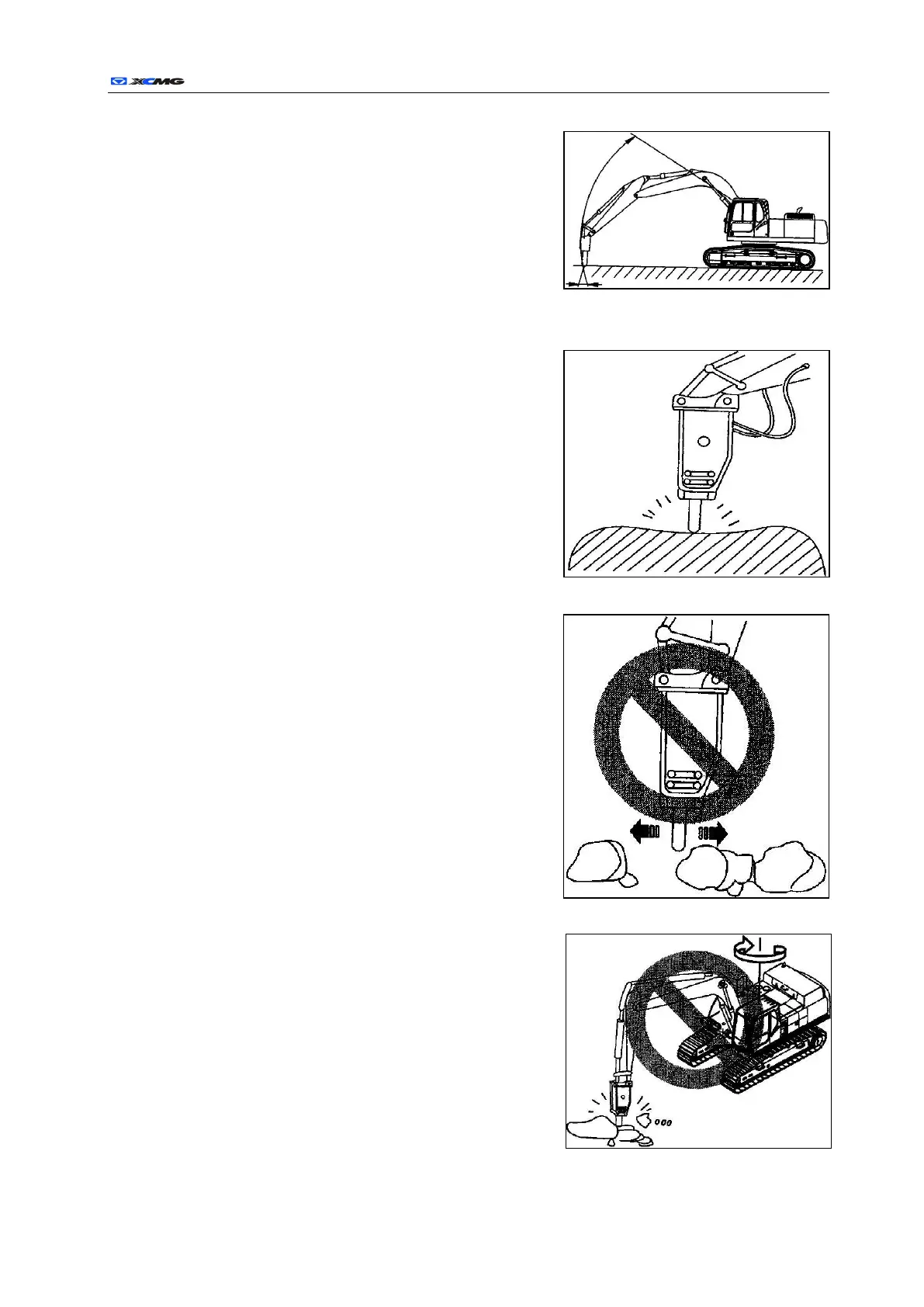Do not swivel the hydraulic hammer when working on rocks,