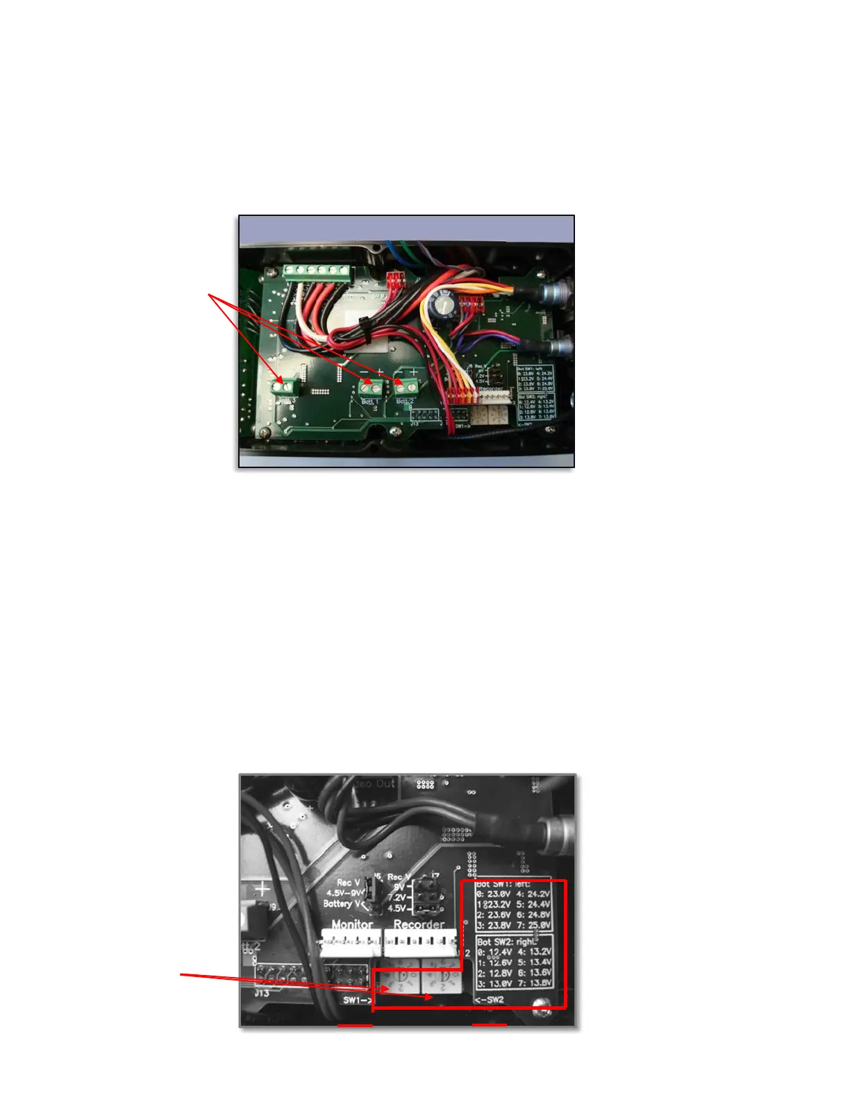 1) Set the 12 and 24 volt low battery indicators SW1 & SW2