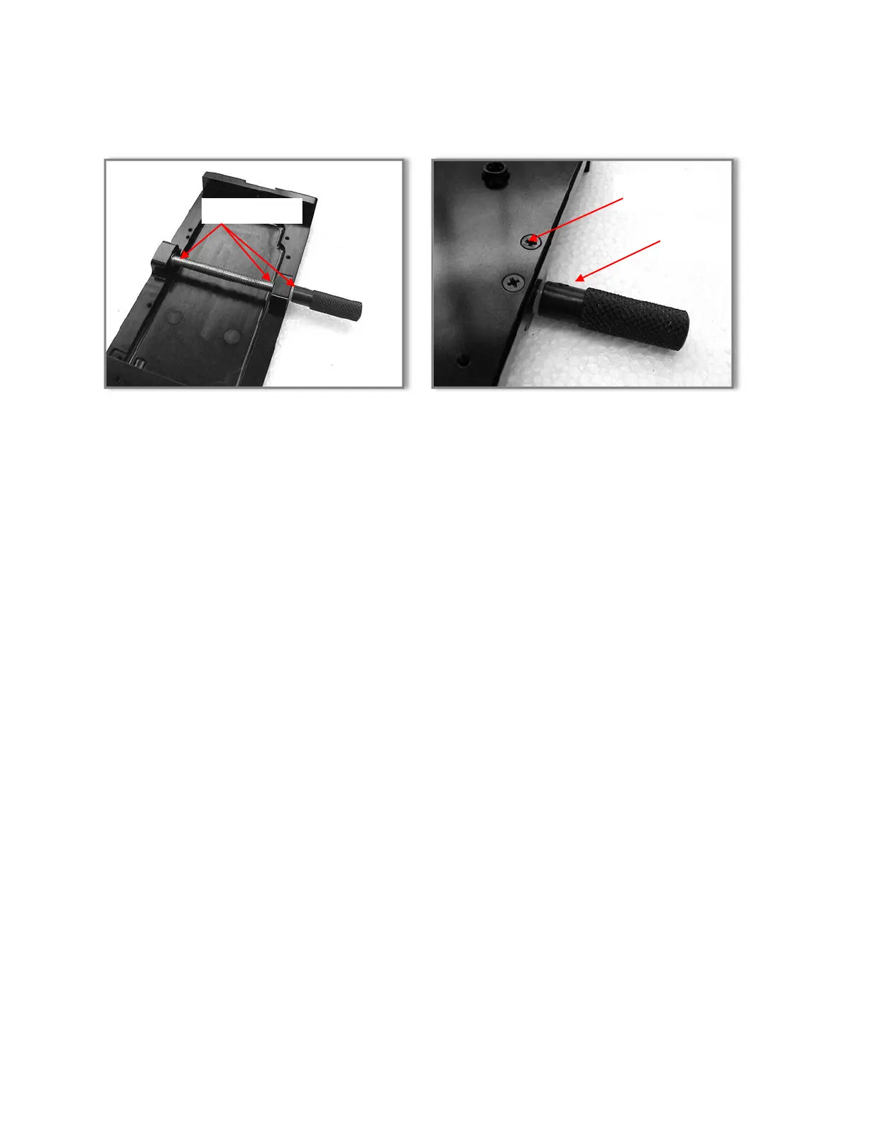 Remove the plastic cap on opposite side and place the knob on the shaft, tighten set screws.