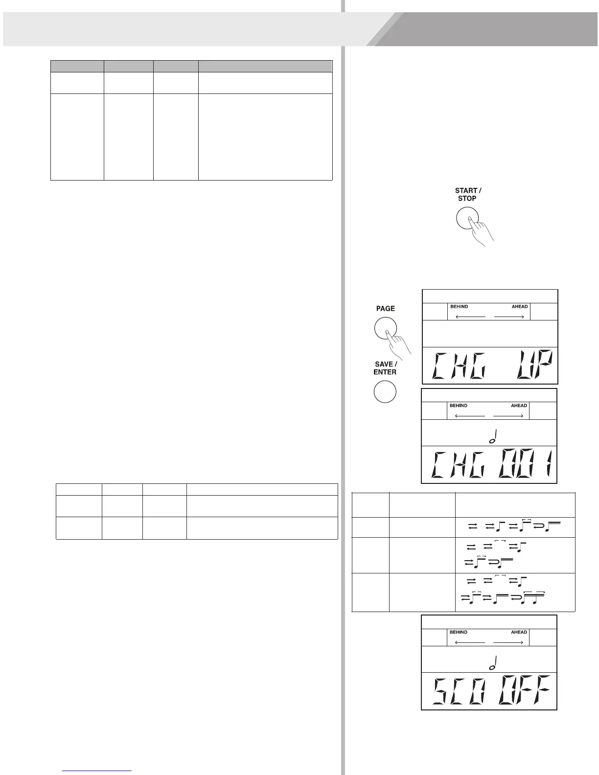 4. Use the [PAGE] button to switch to score editing, press the [+]/ [-]