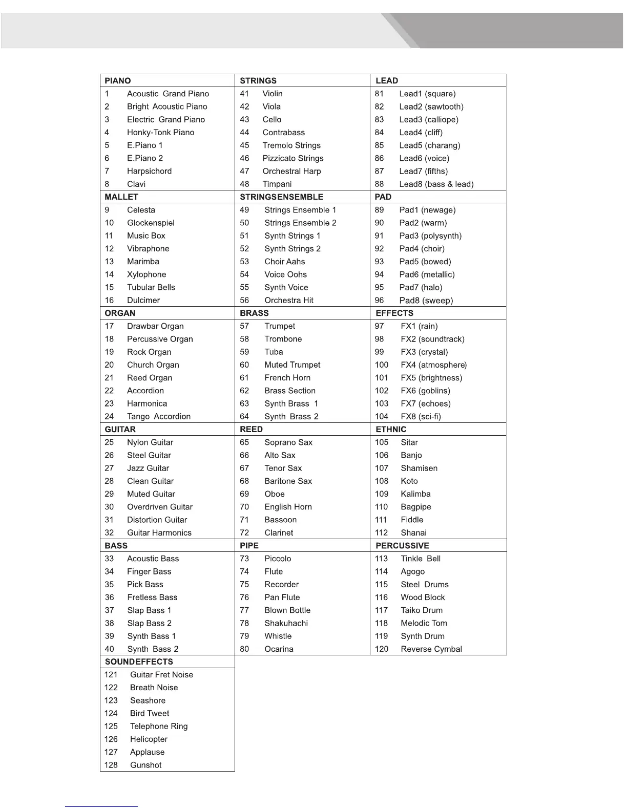 GM Backing Instrument List