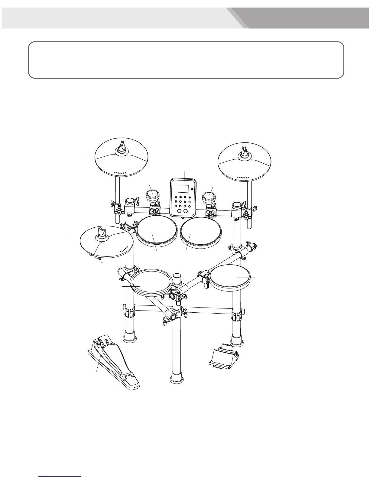 2. For details on assembling the drum stand, attaching the digital drum and connecting pads, refer to the