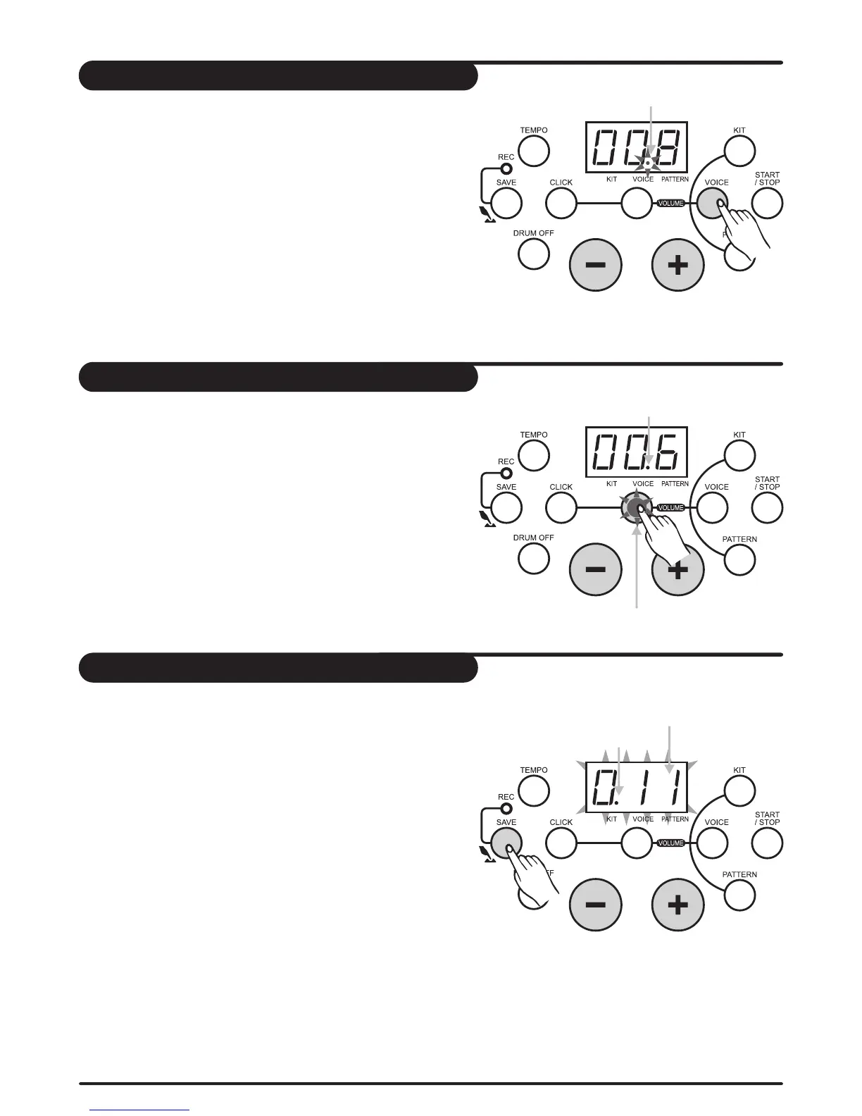 3-digit LED displays the current pad voice number and