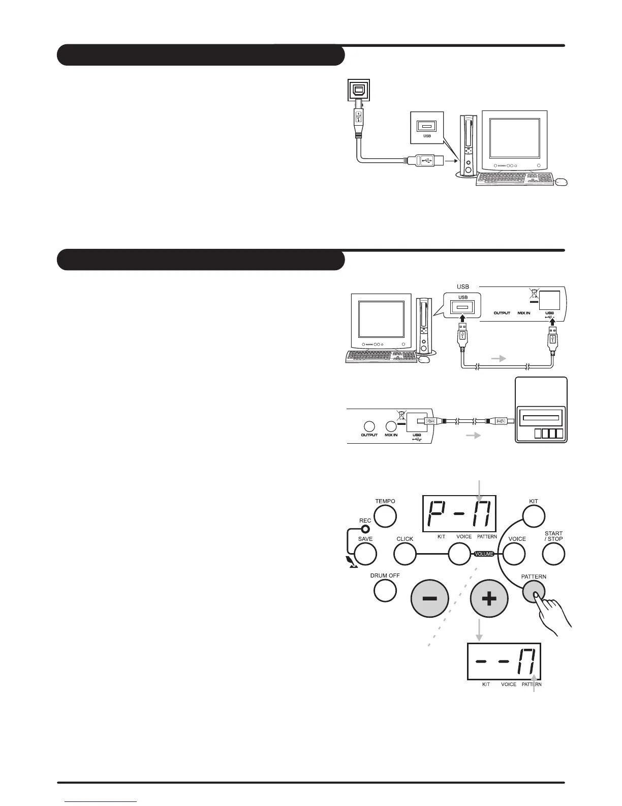In pattern selecting mode, press [pattern] button to enter MIDI