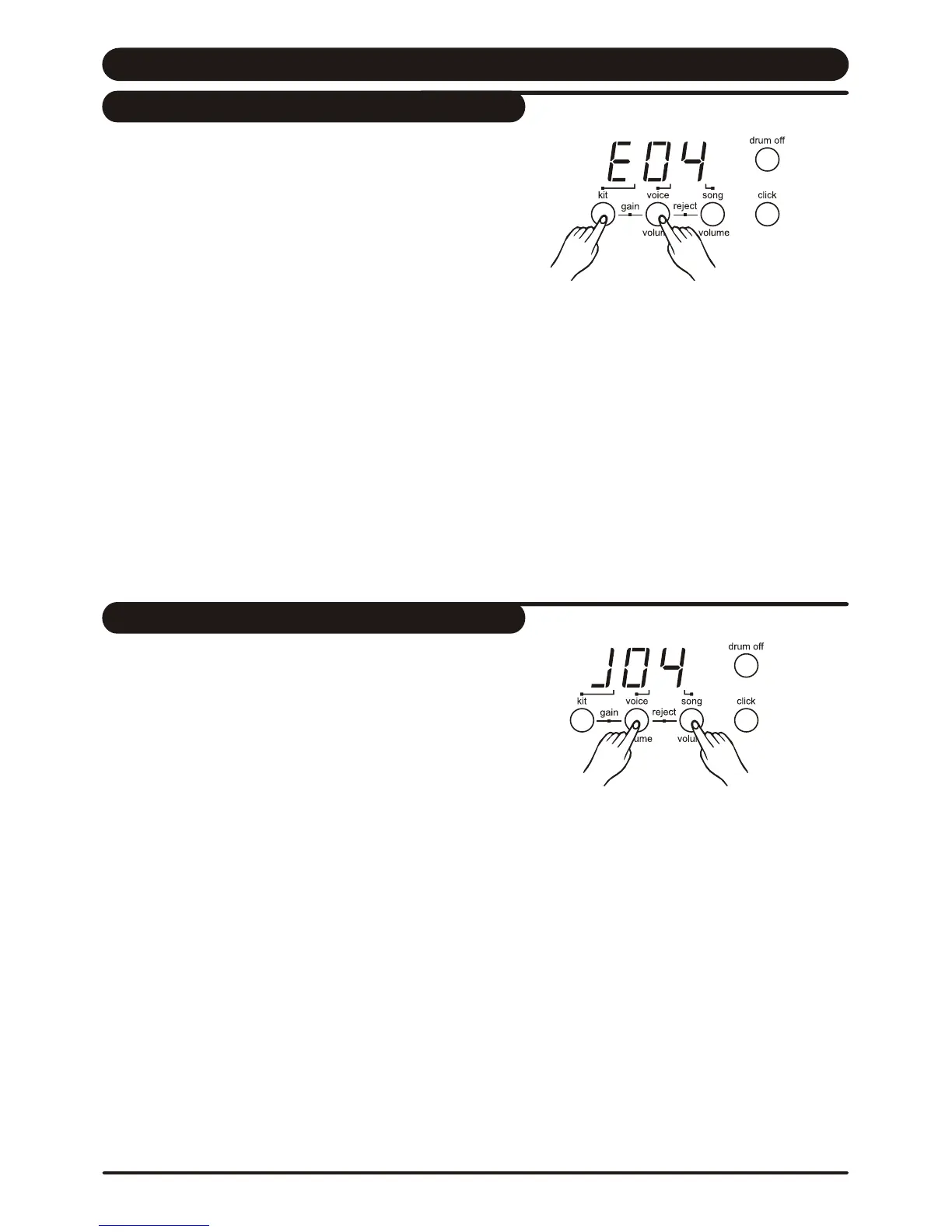 1. Hold down [ voice / volume ] and press [ song / volume ] buttons.