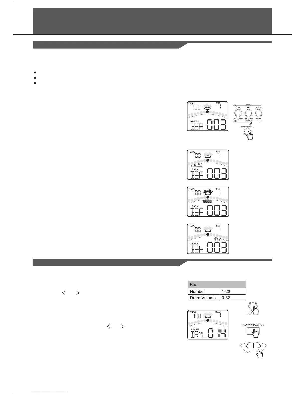 1. Press the [ ] or [ ] button to select the beat.