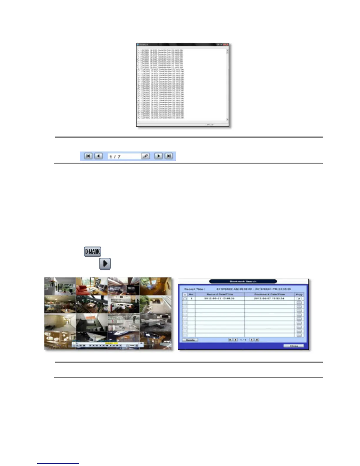 9 numbers of log record will be shown on one page of the <System Log> and <Event Log> window. User