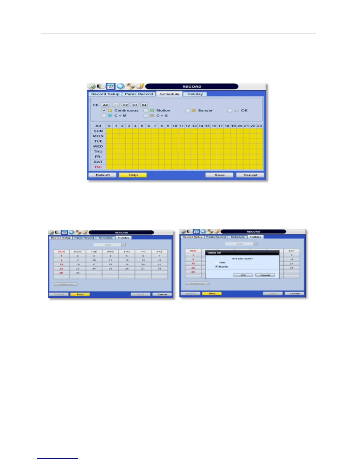 You can set up the record schedule by applying a various record modes to each date and time. Simply select a record mode