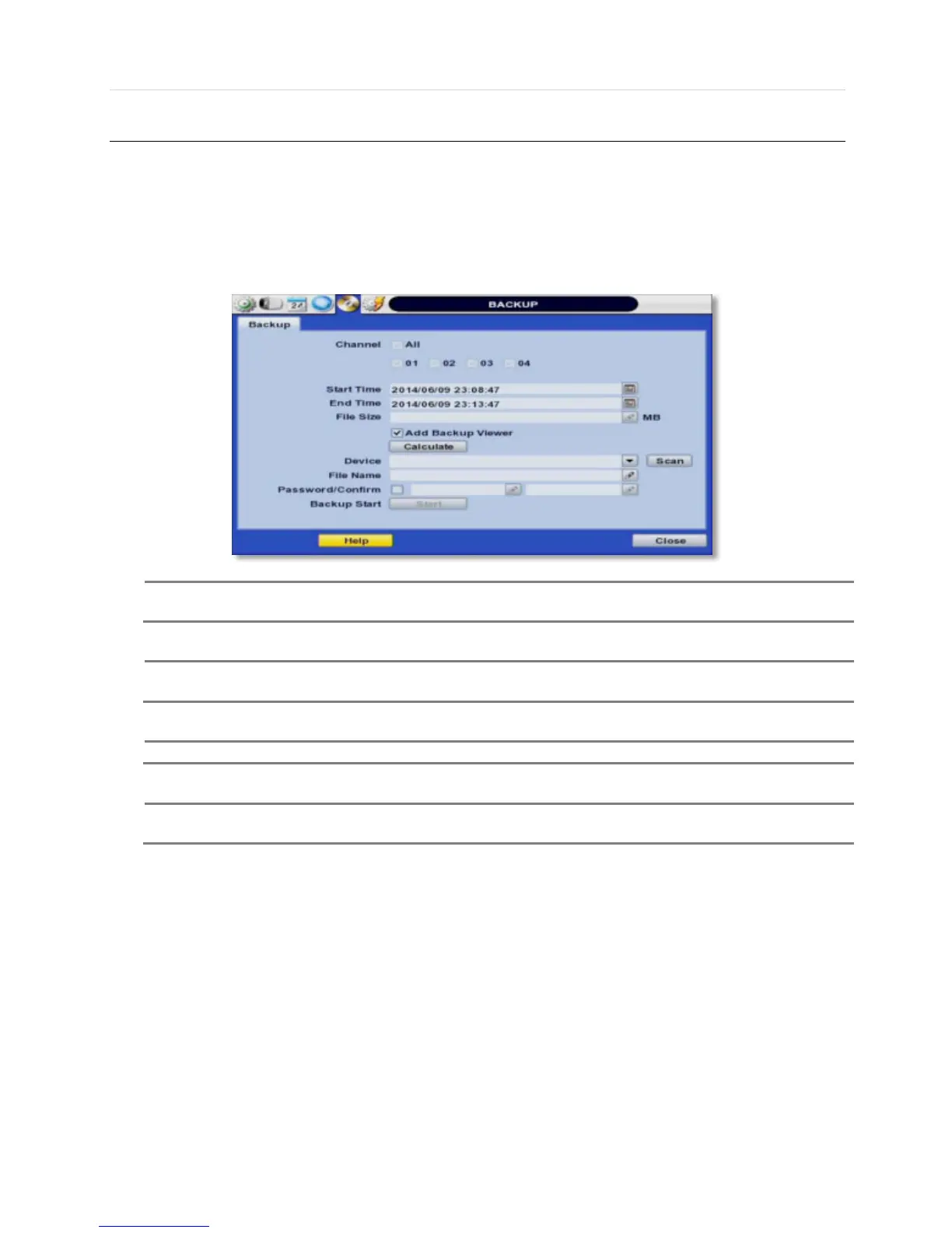 Users can archive a video clip recorded for a certain period on a selected channel or channels as shown below.