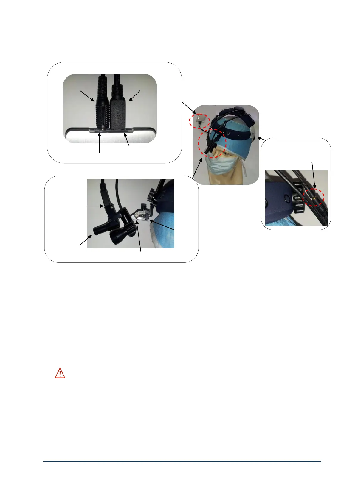 1) Connect LED light plug of head assembly cable to LED light port of ①Main Body (M.B).