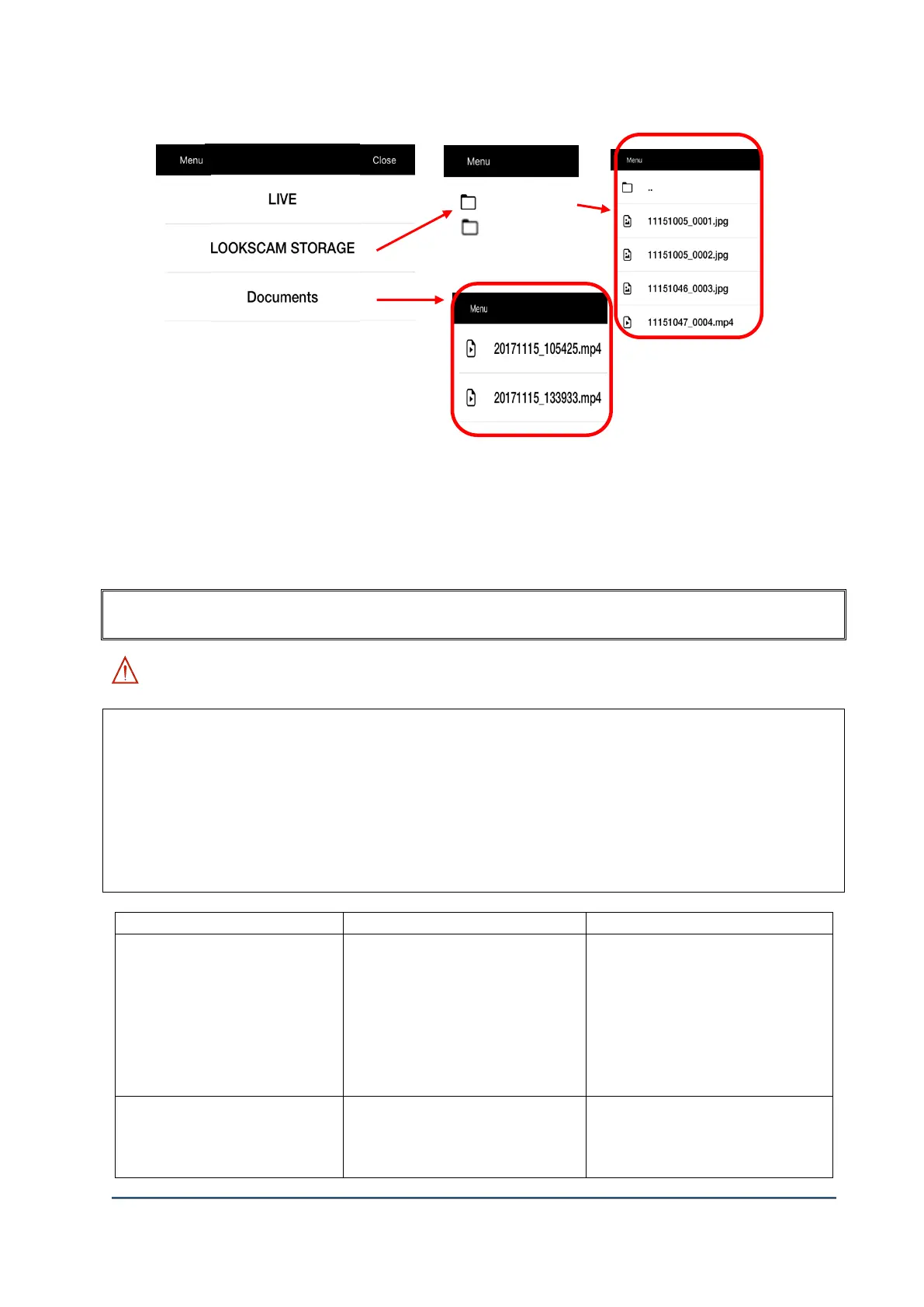 (2) LOOKSCAM STORAGE: Check stored files in SD card of main body.