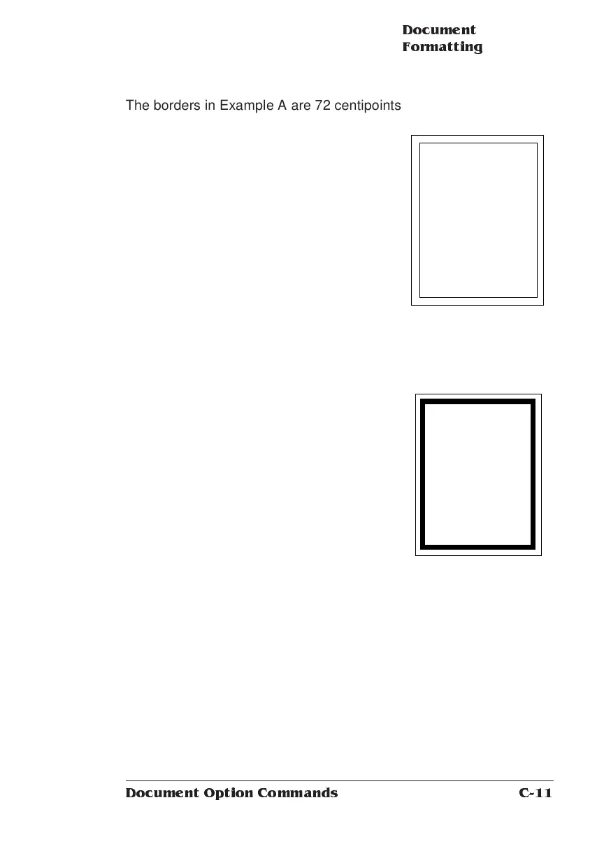 The borders in Example A are 72 centipoints wide (1/100 inch).