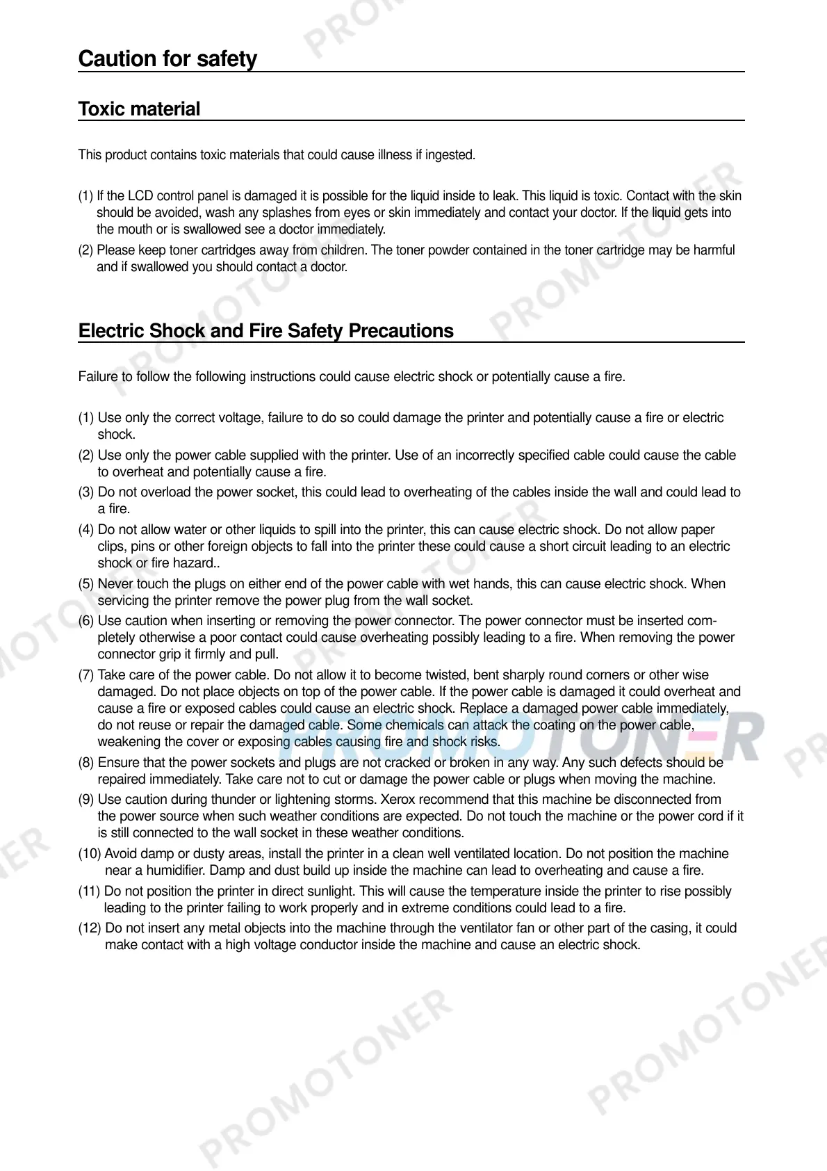 (9) Use caution during thunder or lightening storms. Xerox recommend that this machine be disconnected from