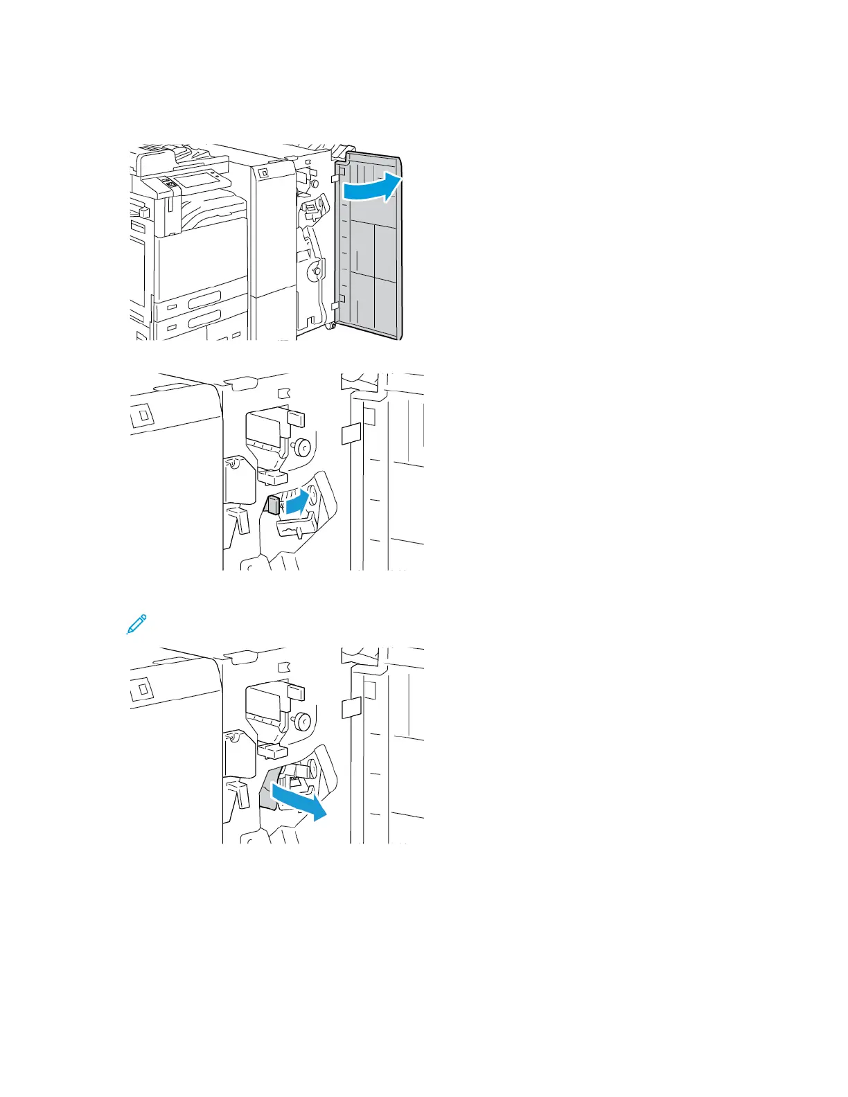 Note: If the paper is torn, remove all torn pieces of the jammed paper from the finisher.