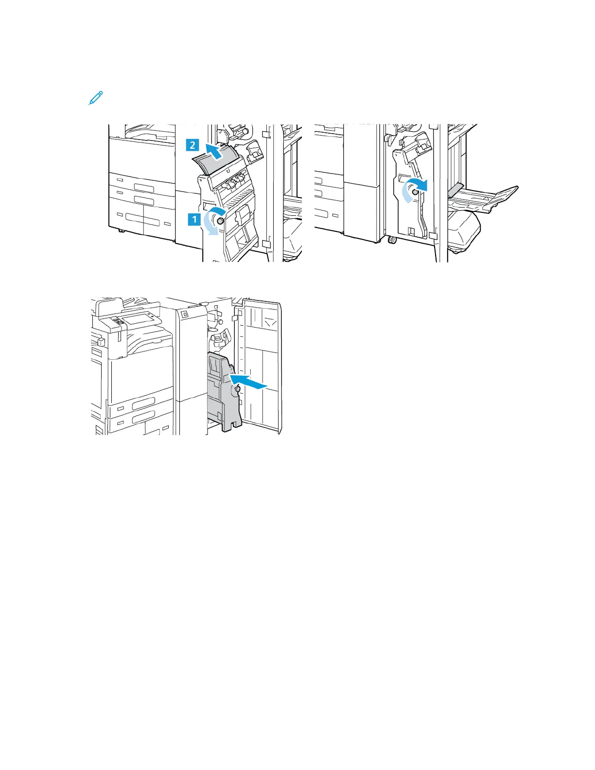 Note: If the paper is torn, remove all torn pieces of the jammed paper from the finisher.