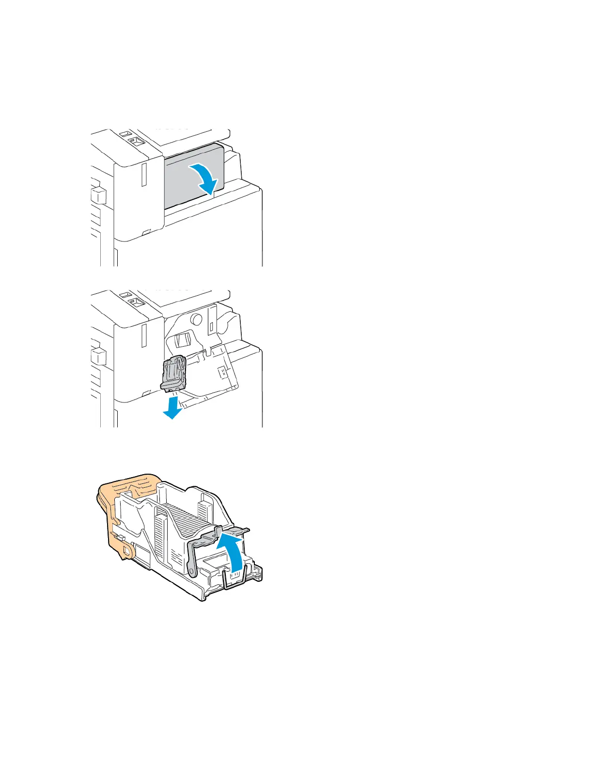 3. Check inside the finisher for any loose staples, then remove the staples.