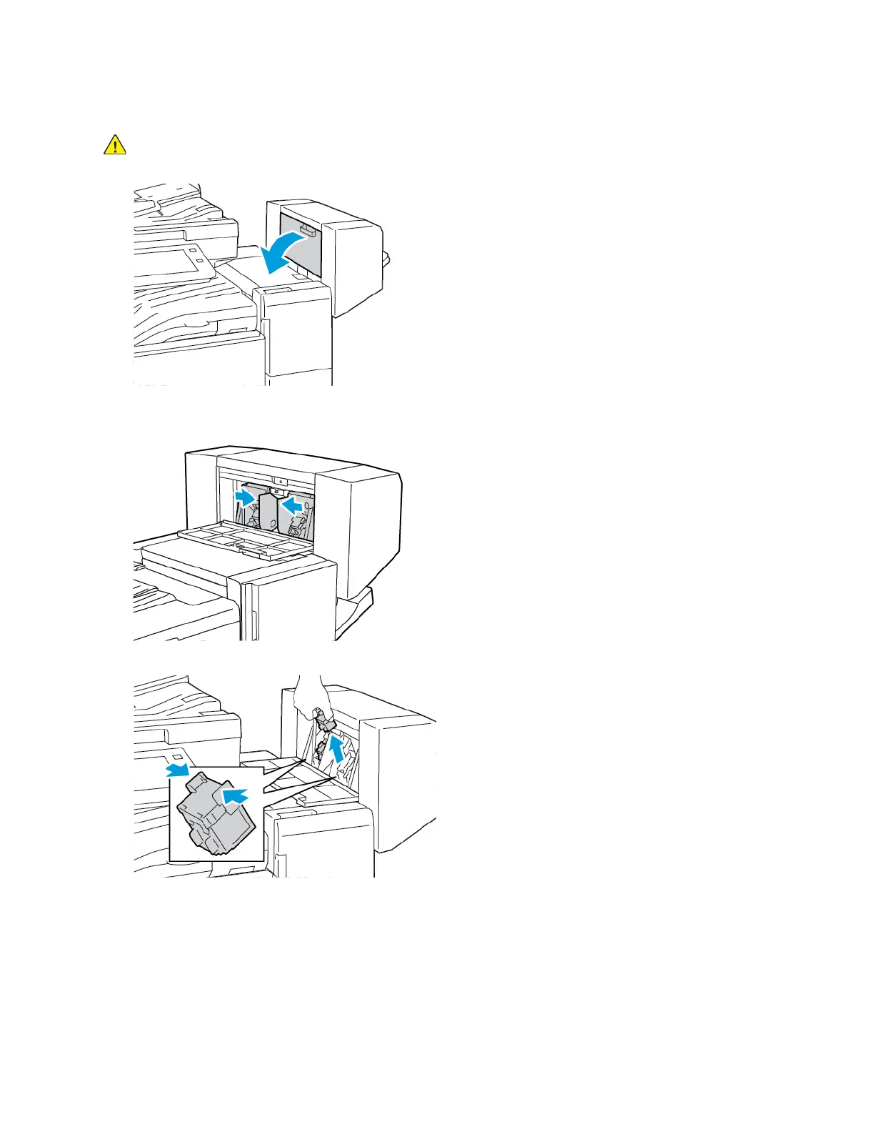 3. Hold the tabs on both sides of the staple cartridge and pull the cartridge out of the finisher.