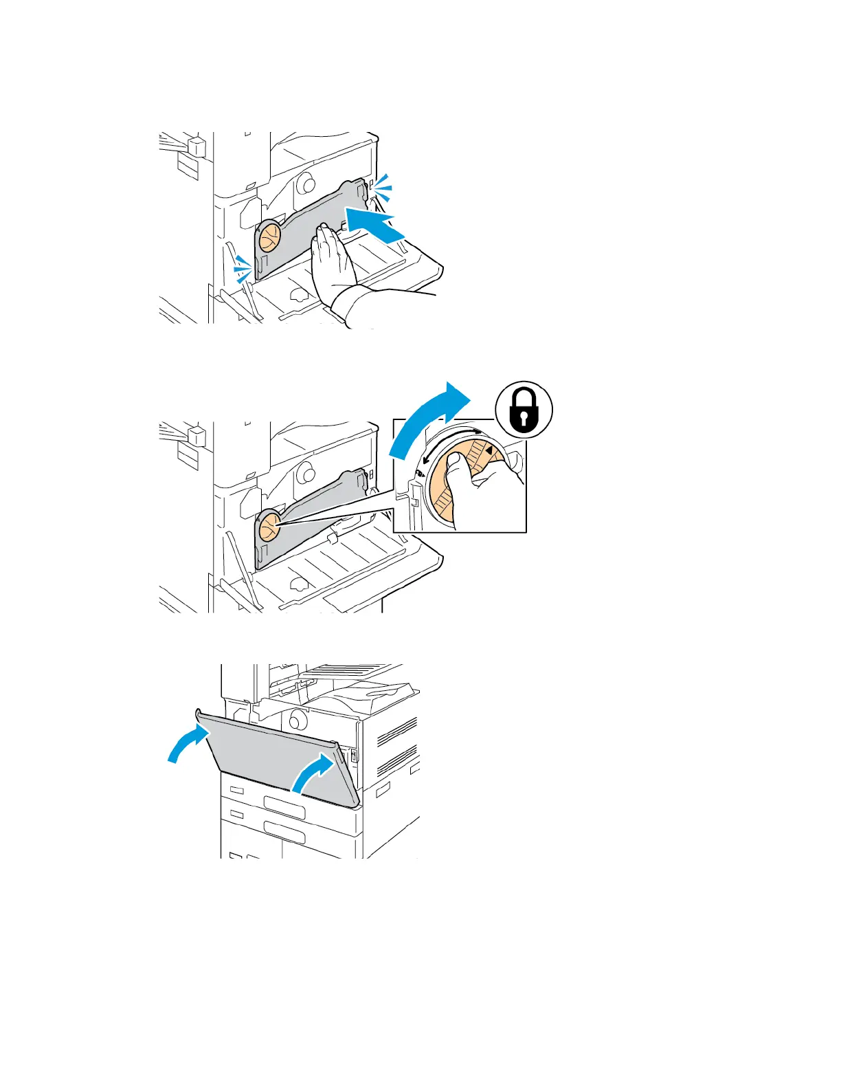 b. Press the waste toner transport unit toward the printer, until both ends click into place.