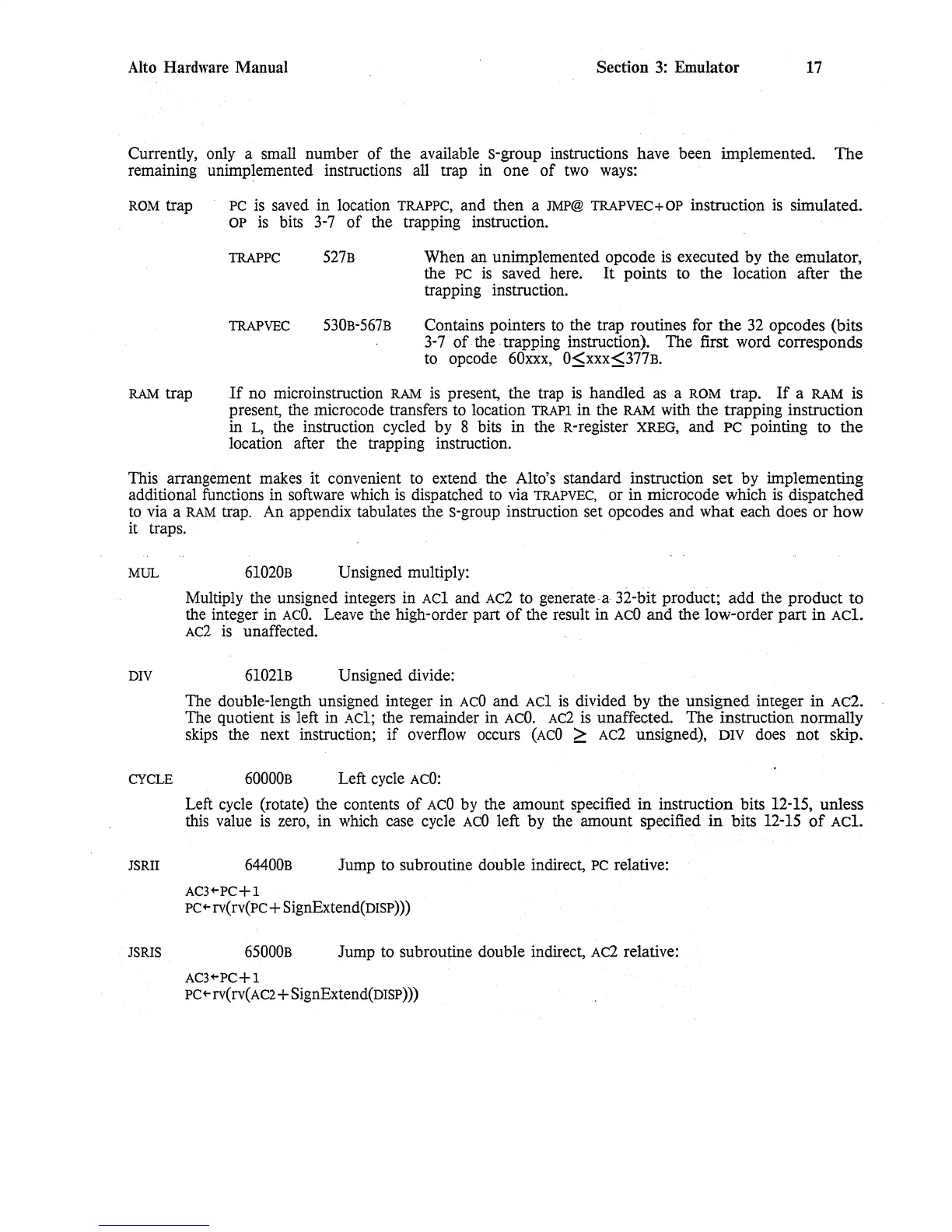 trap. An appendix tabulates the s-group instruction set opcodes and what each does