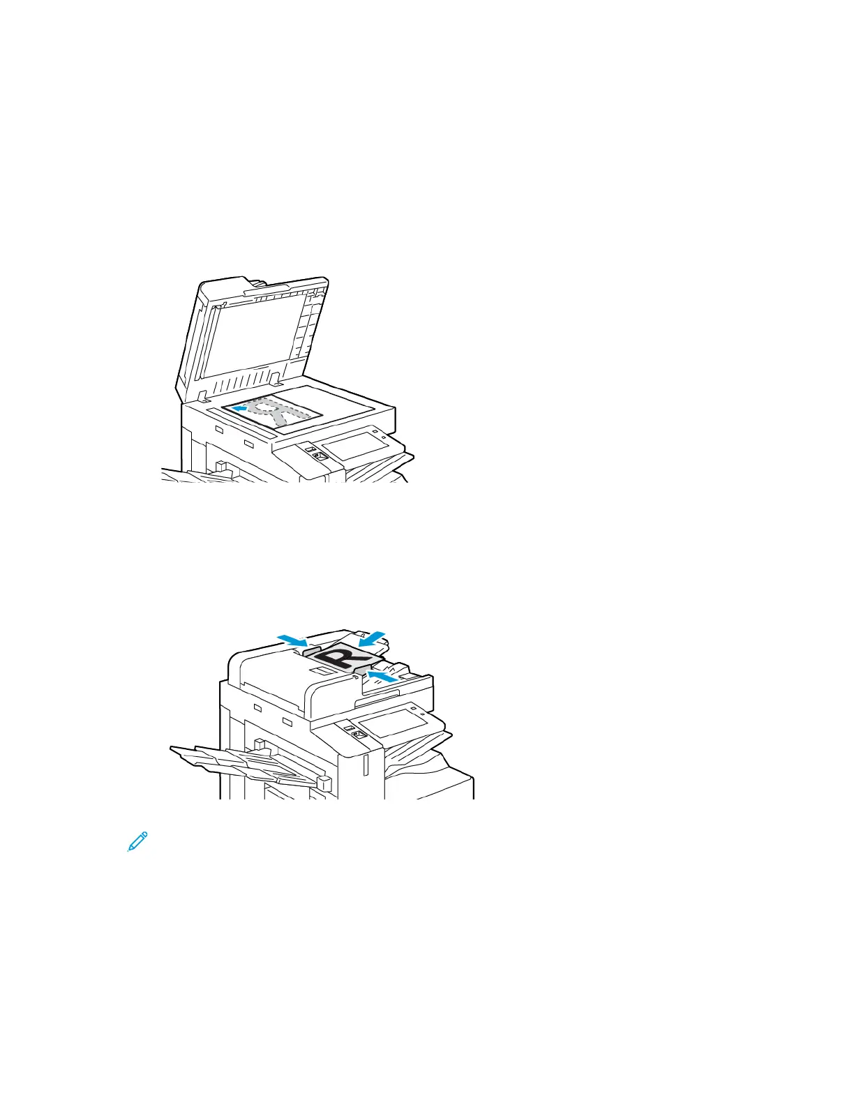 • For multiple, single, or 2-sided pages, use the duplex automatic document feeder. Remove all
