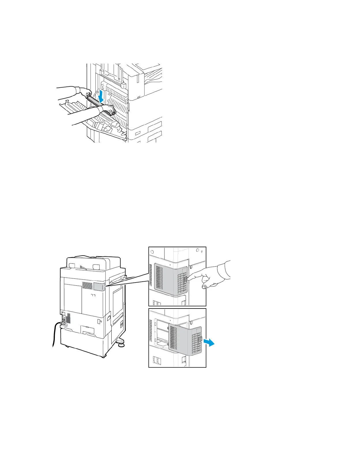 7. Place the new transfer roller in the printer as shown. Press down until the transfer roller clicks into