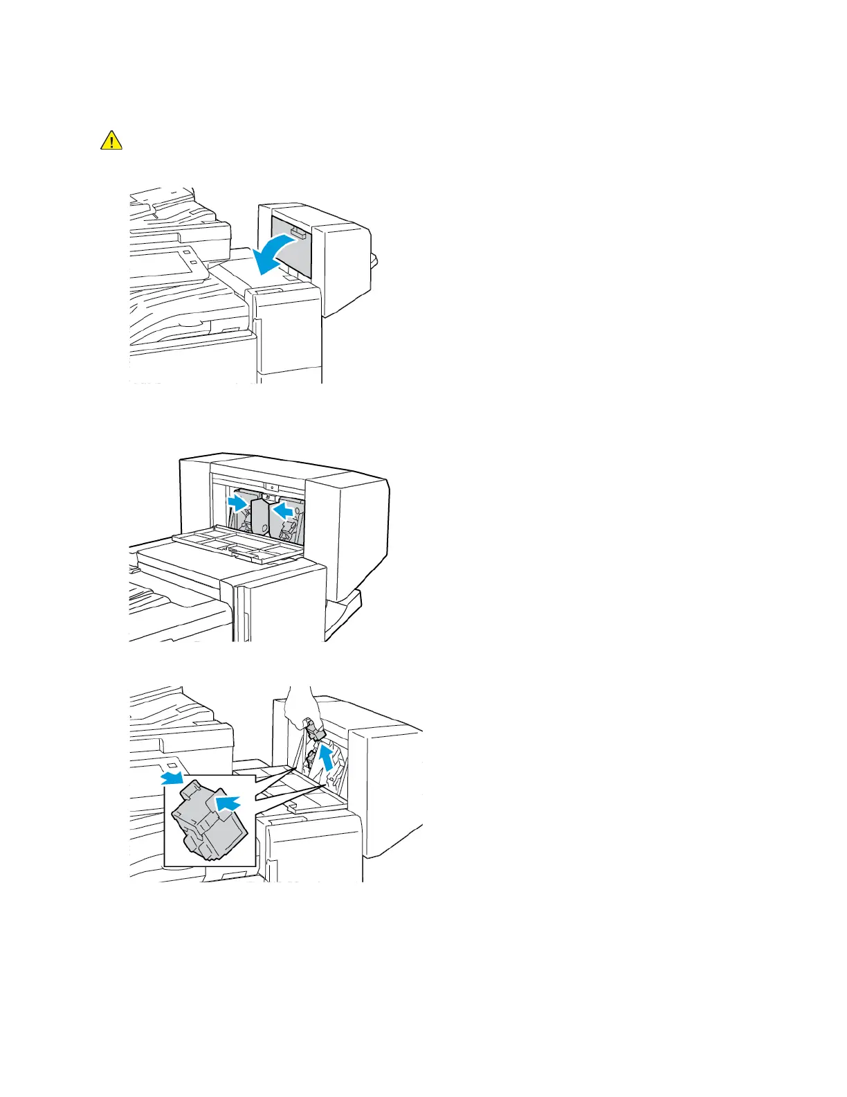 3. Hold the tabs on both sides of the staple cartridge and pull the cartridge out of the finisher.
