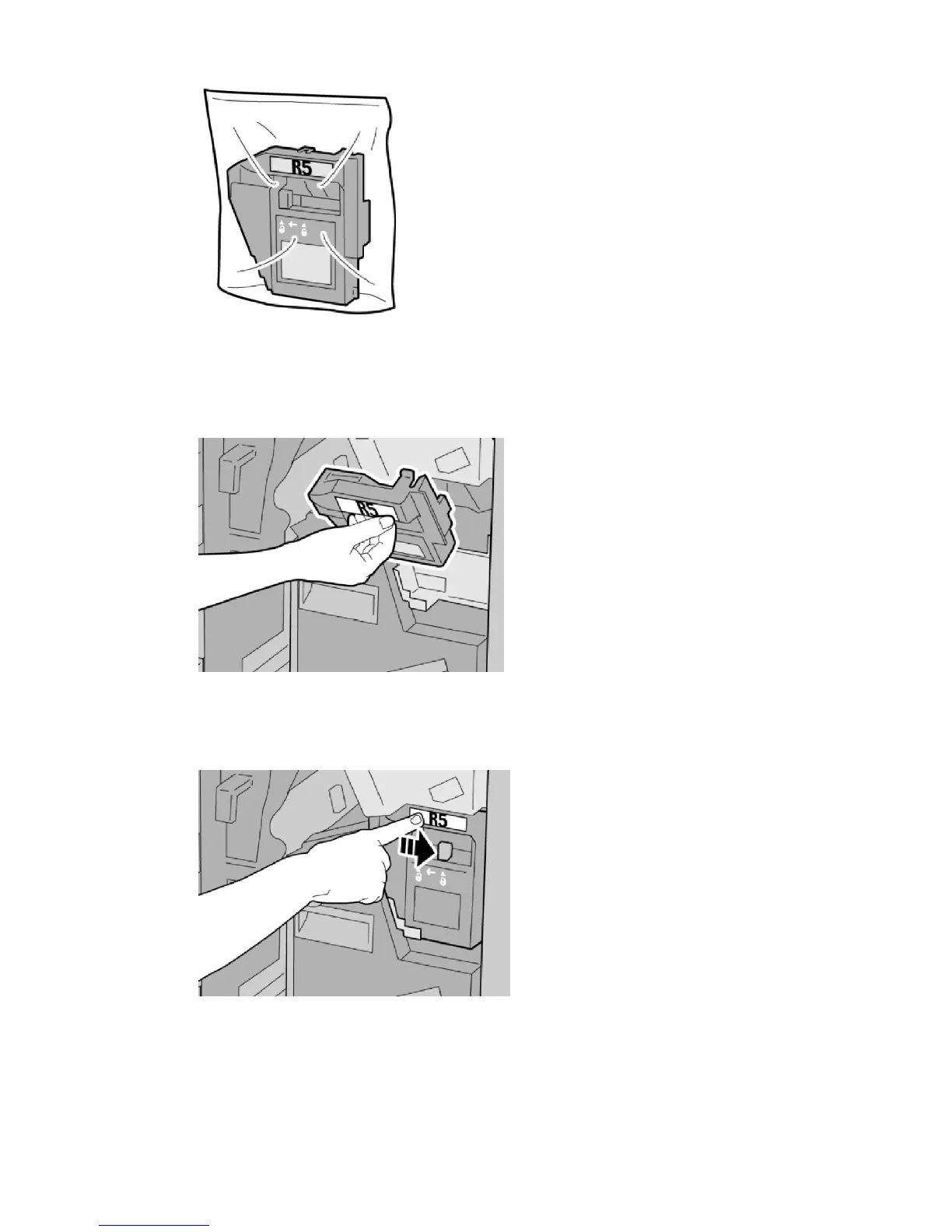 6. Hold the new staple waste container by the R5 handle area and push it into the