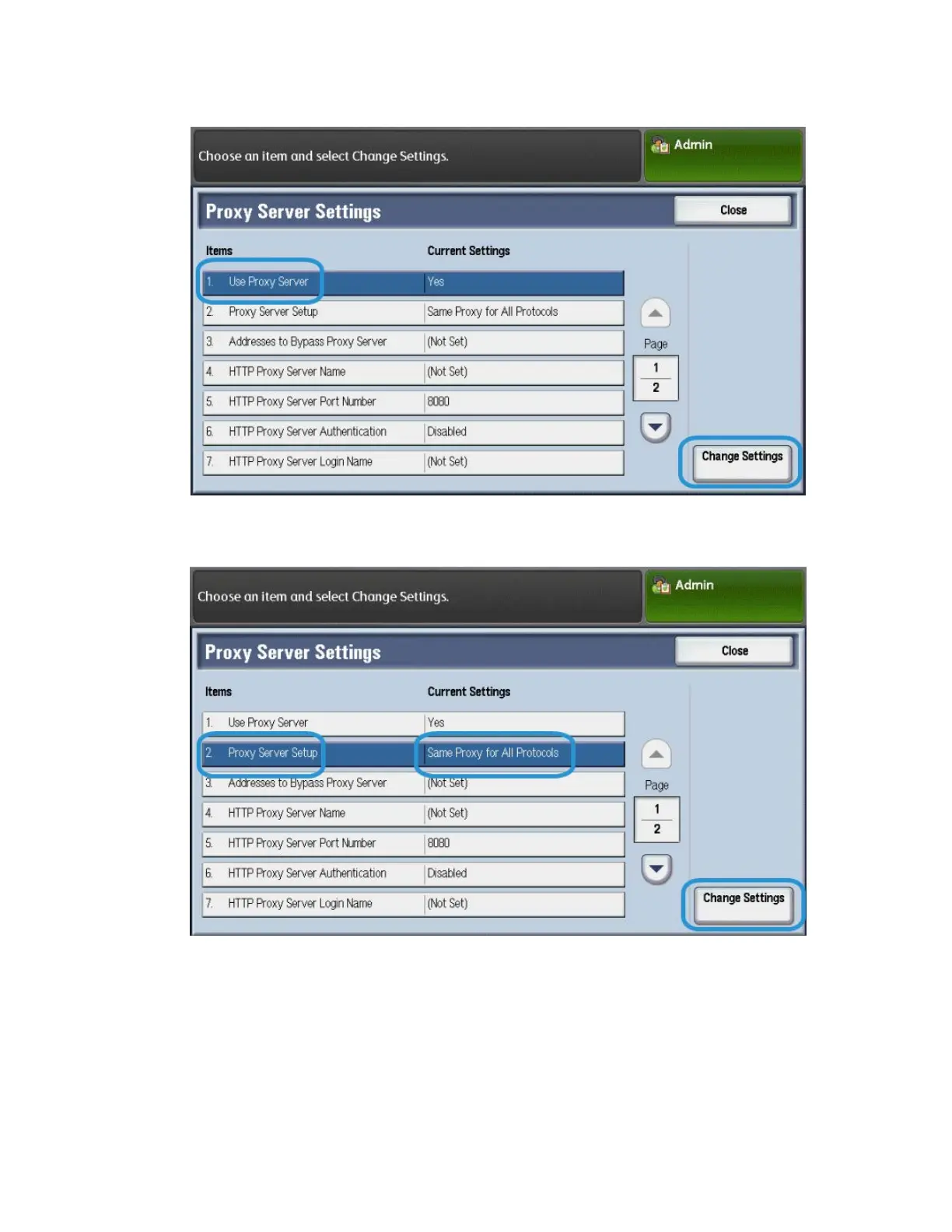 5. Tap Proxy Server Setup > Change Settings > Same Proxy for All Protocols > Save.