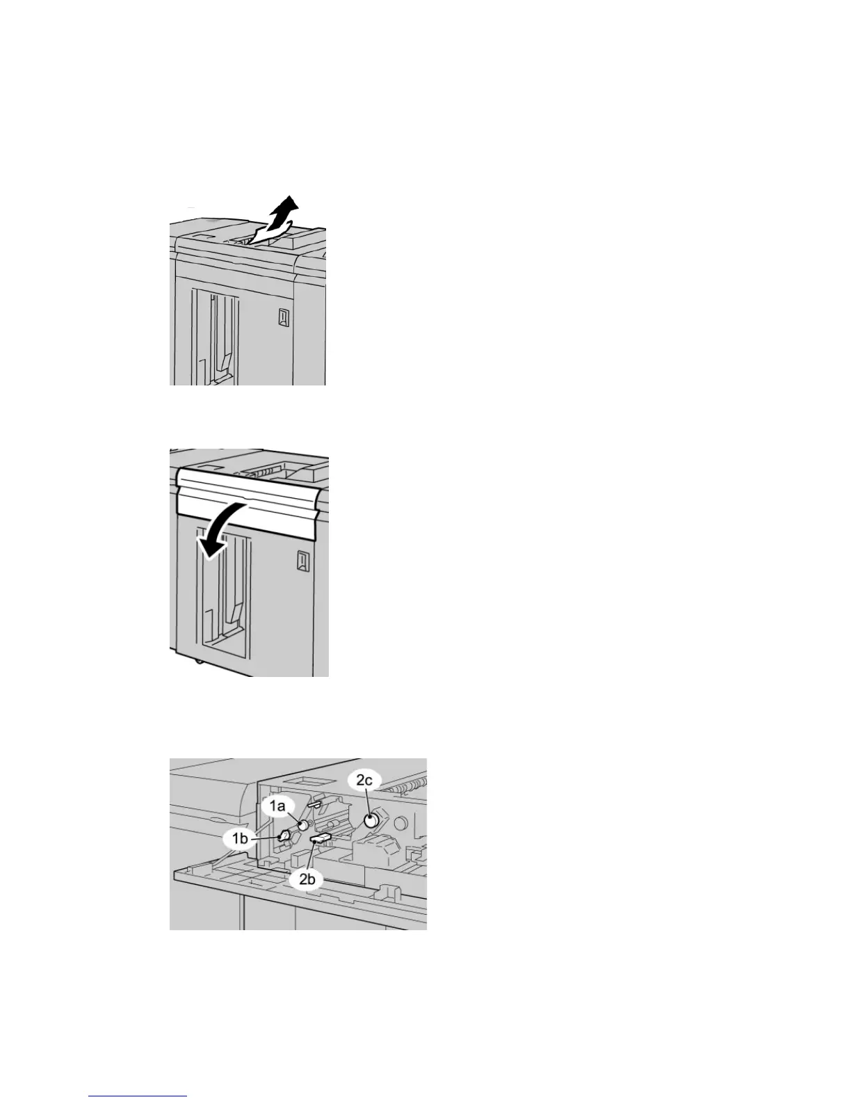 3. Lift the green handle(s) and/or rotate the green knob and remove all paper in the