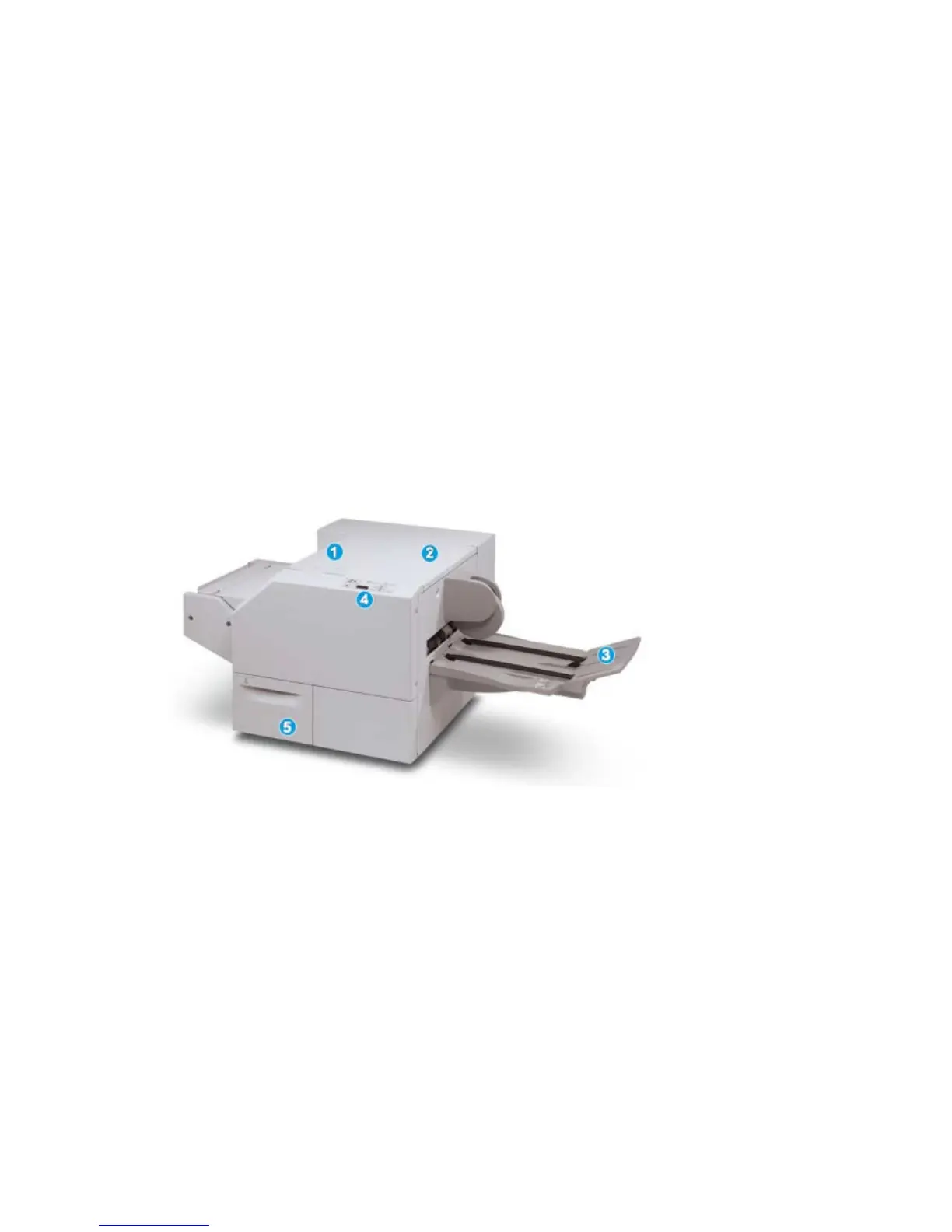 3. Booklet Output Tray: This tray receives square-fold booklet output from the finisher.