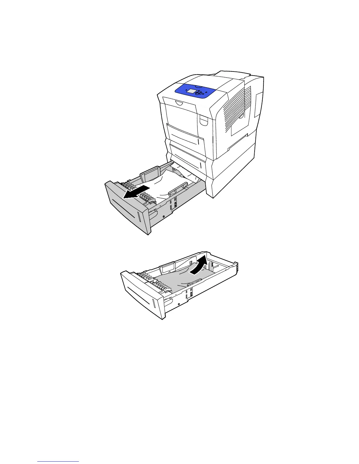 1. Remove the tray from the printer. Remove all lower paper feed trays.