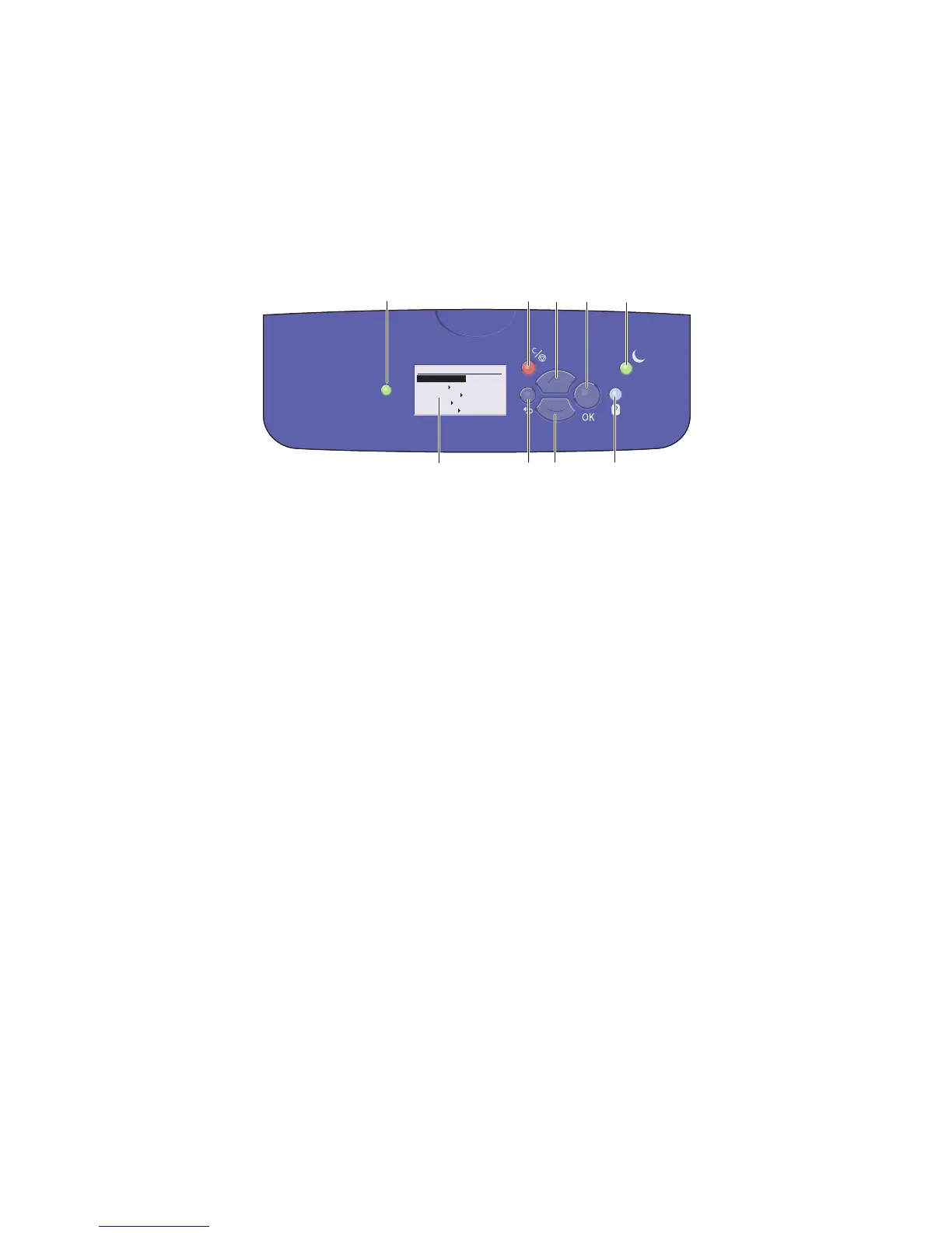 The control panel displays the printer’s operating status, for example, Warming up, Ready to Print,