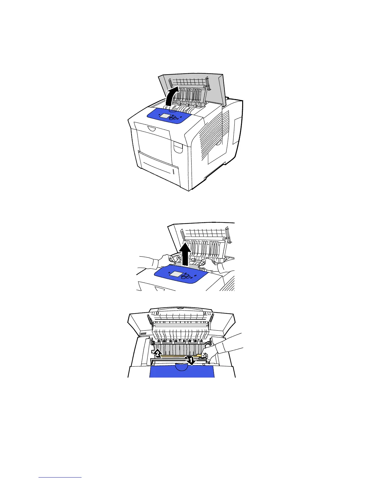 2. To remove any jammed paper, grasp the paper and gently pull it up and out in the direction as