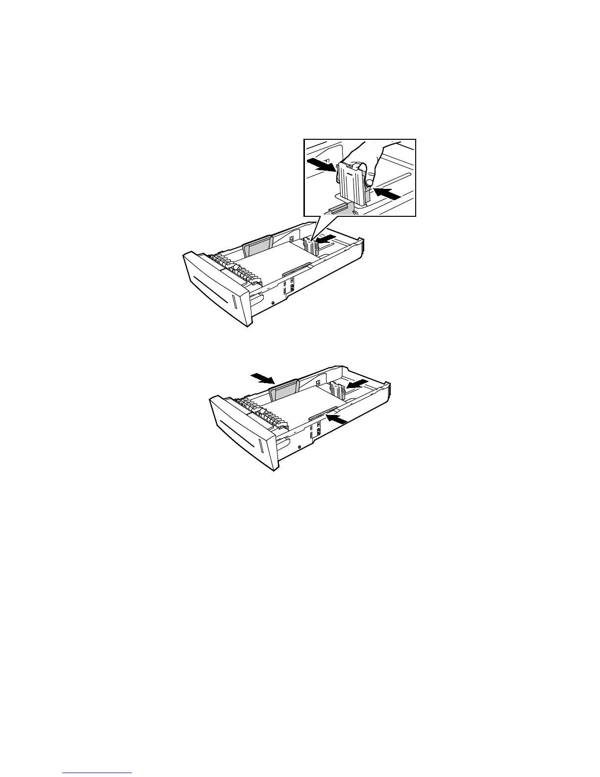 b. Slide the width guides until the arrows point to the appropriate paper size on the bottom of the