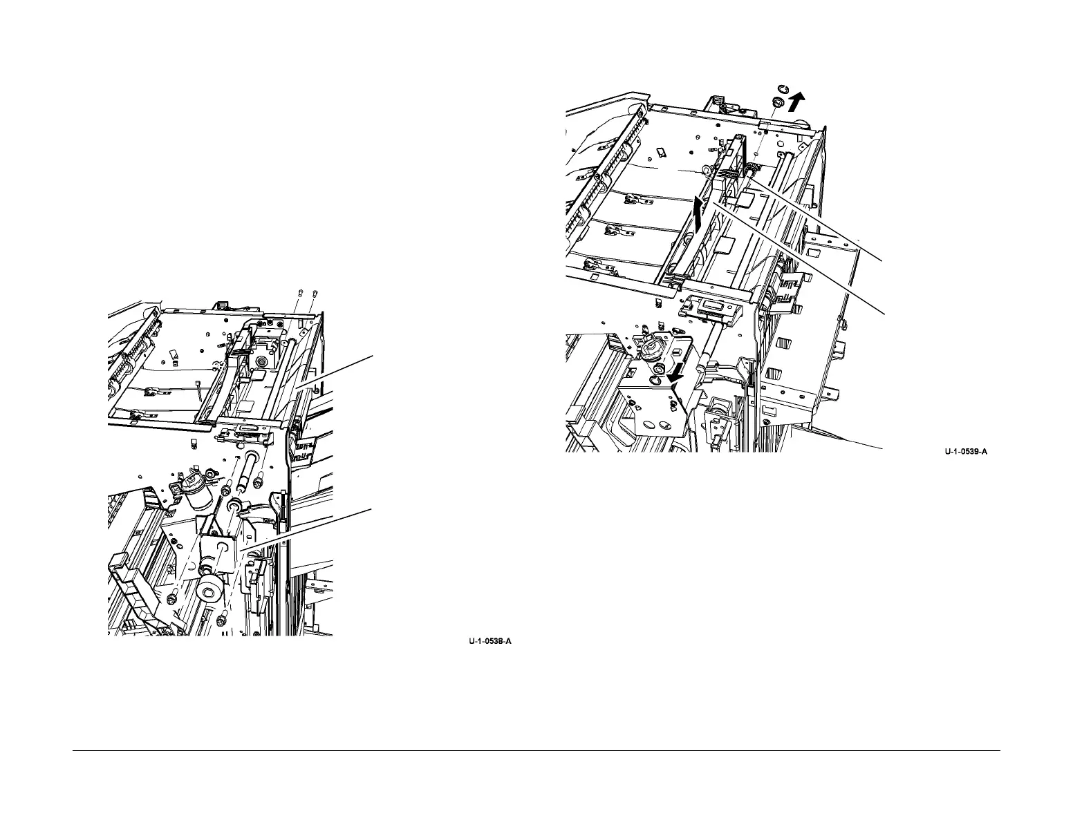 3. Remove the stacker shaft front bearing bracket and the exit guide plate front and rear