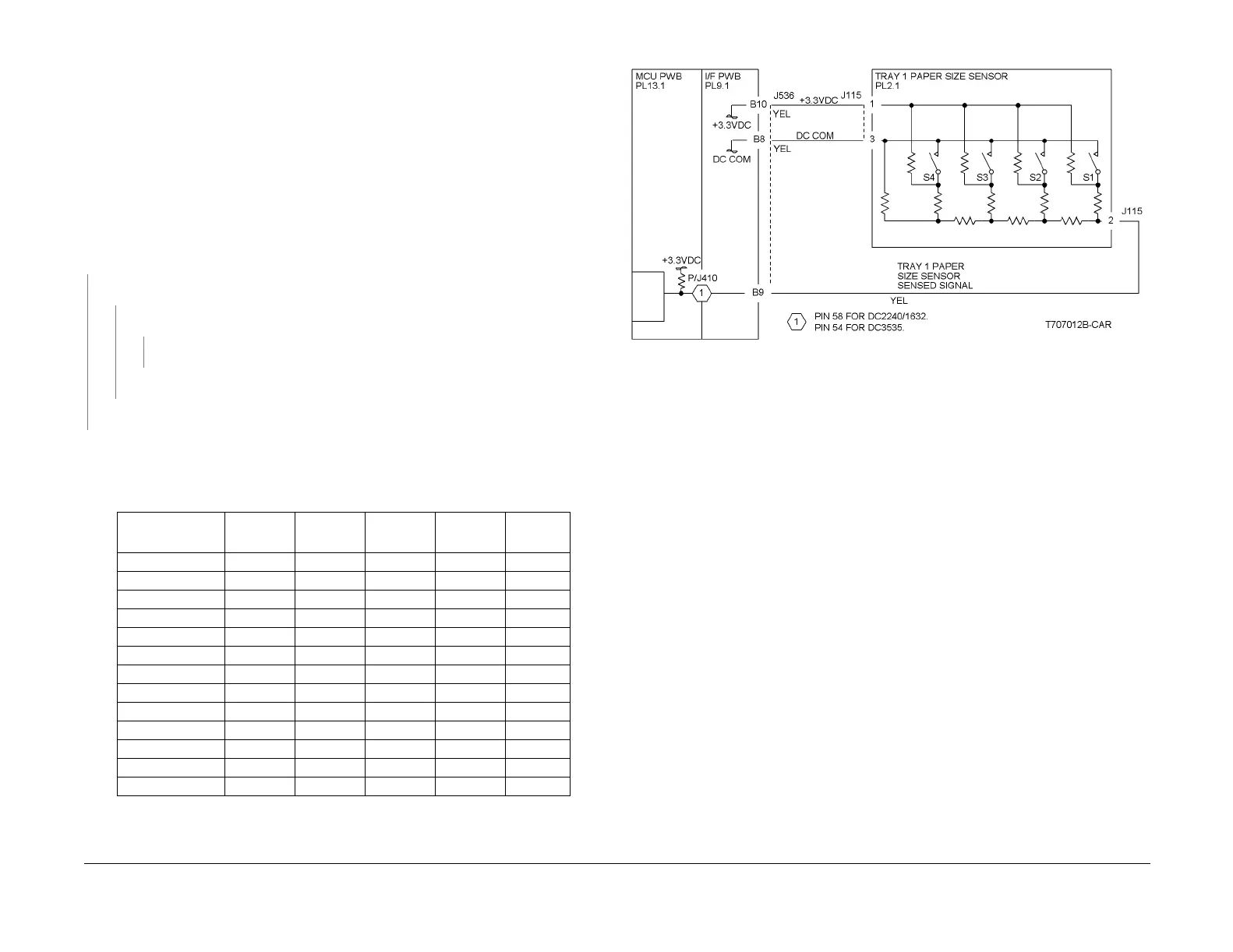 Ensure Tray 1 is closed. The voltage measured at P/J536-B9 on the I/F PWB corresponds