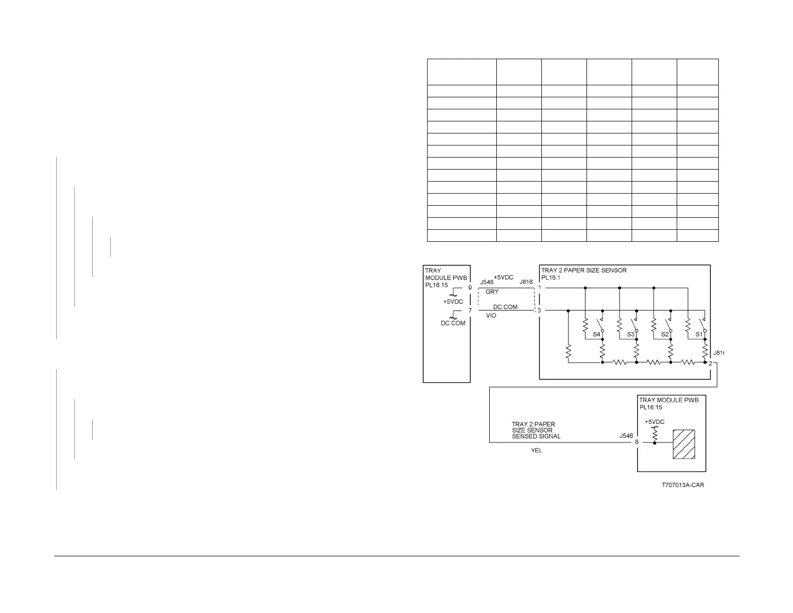 There is +5VDC from P/J816-1 to P/J816-3 on the Tray 2 Paper Size Sensor (PL