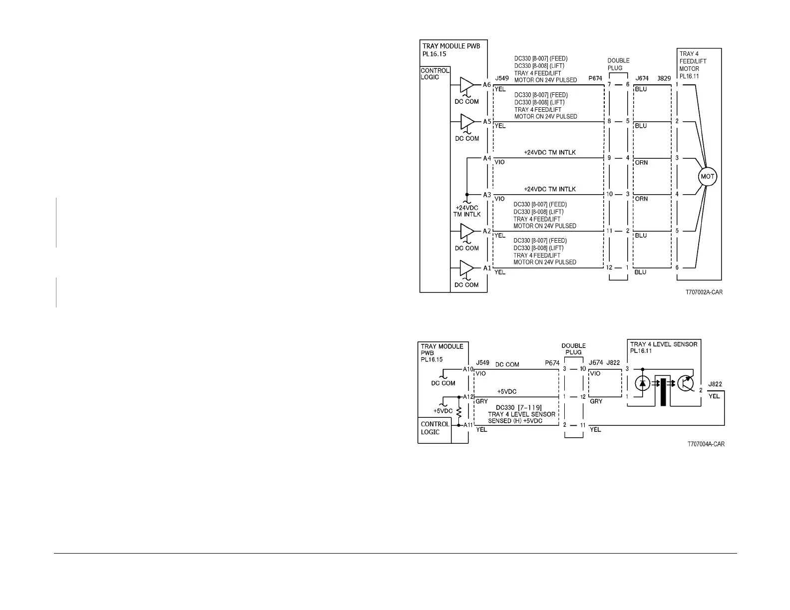 Enter dC330 [008-008] and press Start. The Tray 4 Feed/Lift Motor (PL 16.11) energizes.