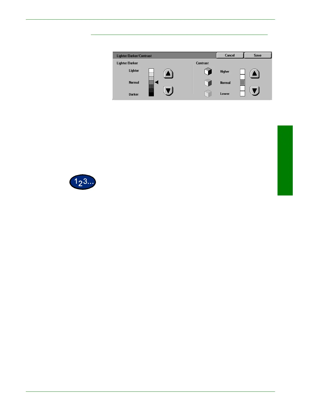 lightness or darkness of the output copy. Contrast allows you to