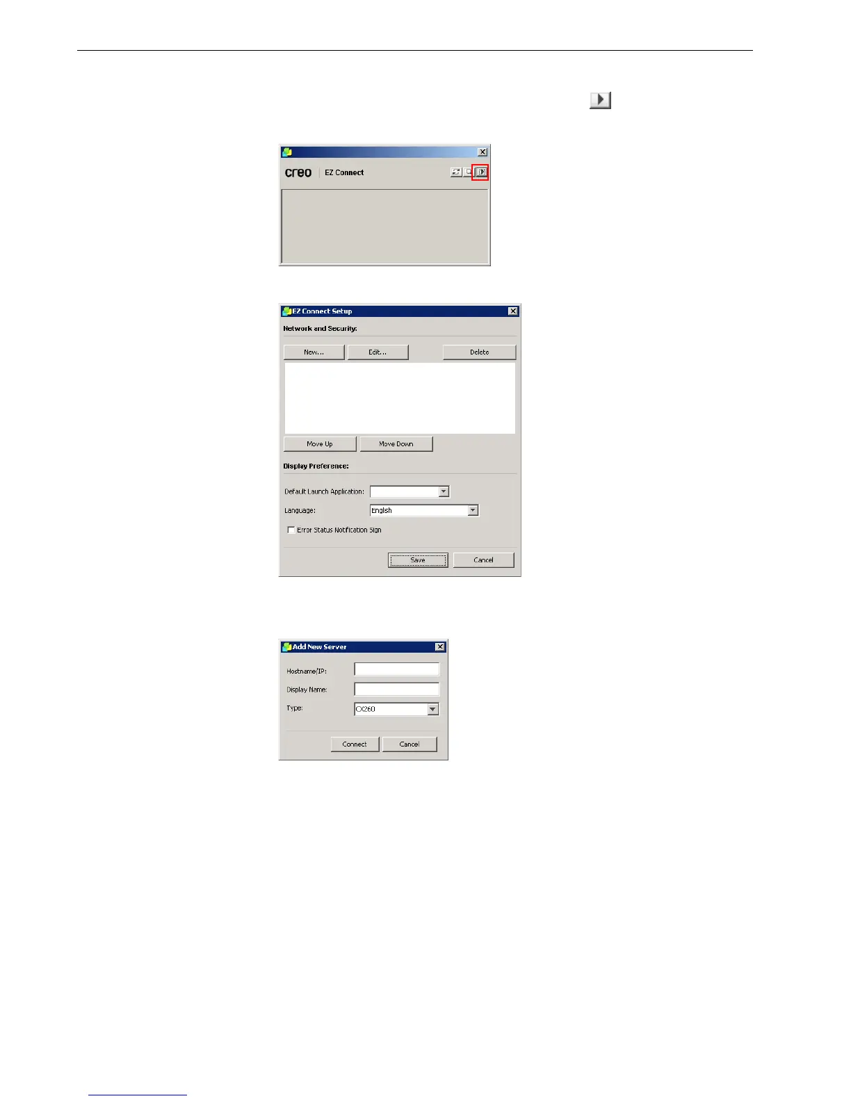 To add a new server to the EZ Connect window: