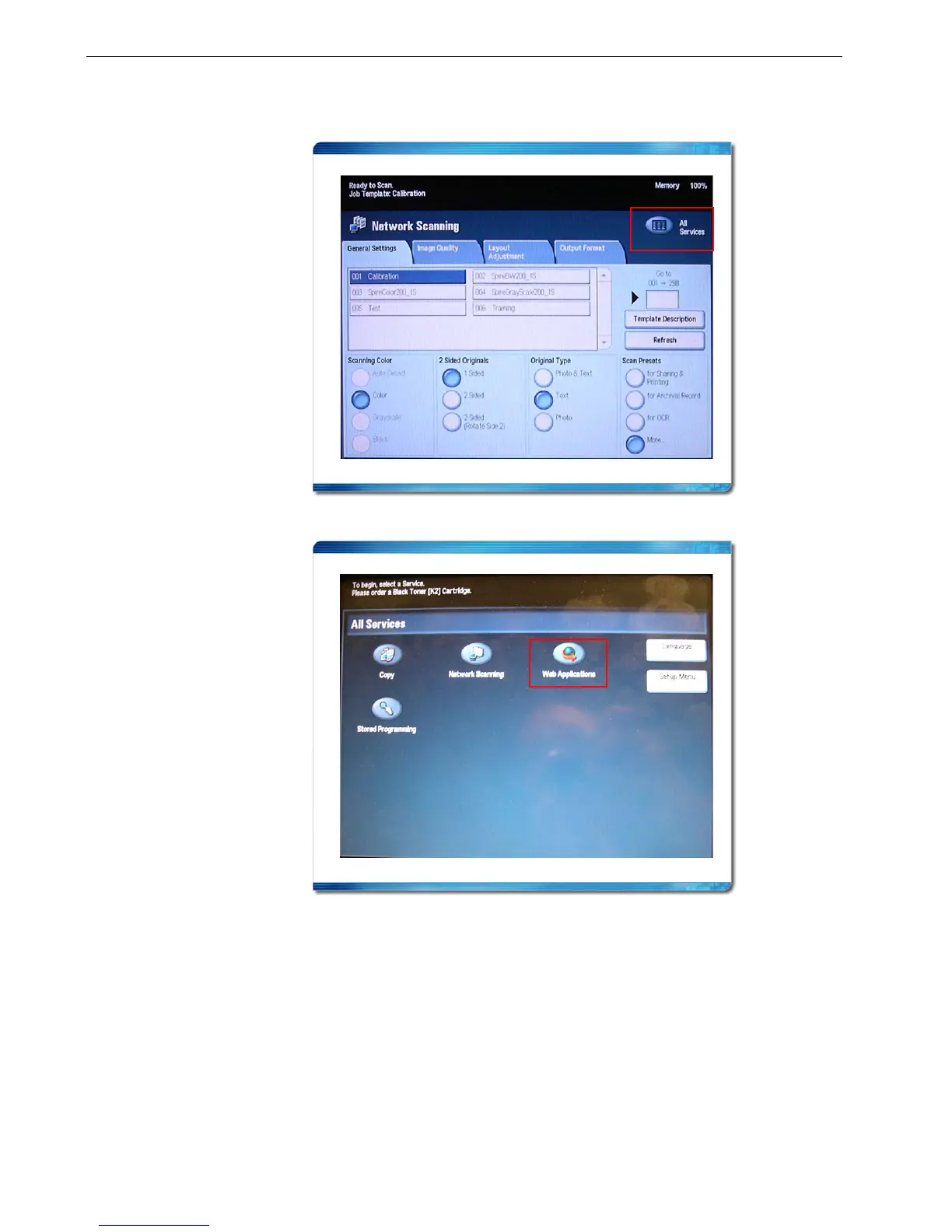 1. On the printer’s touch screen, touch All Services.