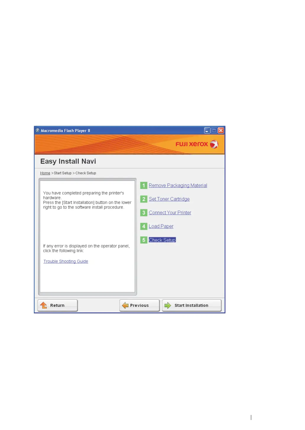 2 Follow the on-screen instructions until the "Check Setup" screen appears.