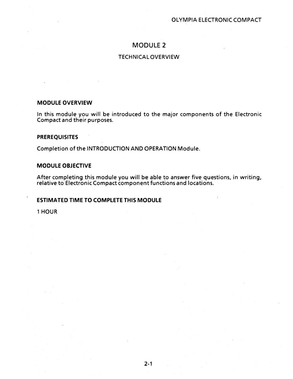Xerox OLYMPIA ELECTRONIC COMPACT - MODULE 2 TECHNICAL OVERVIEW